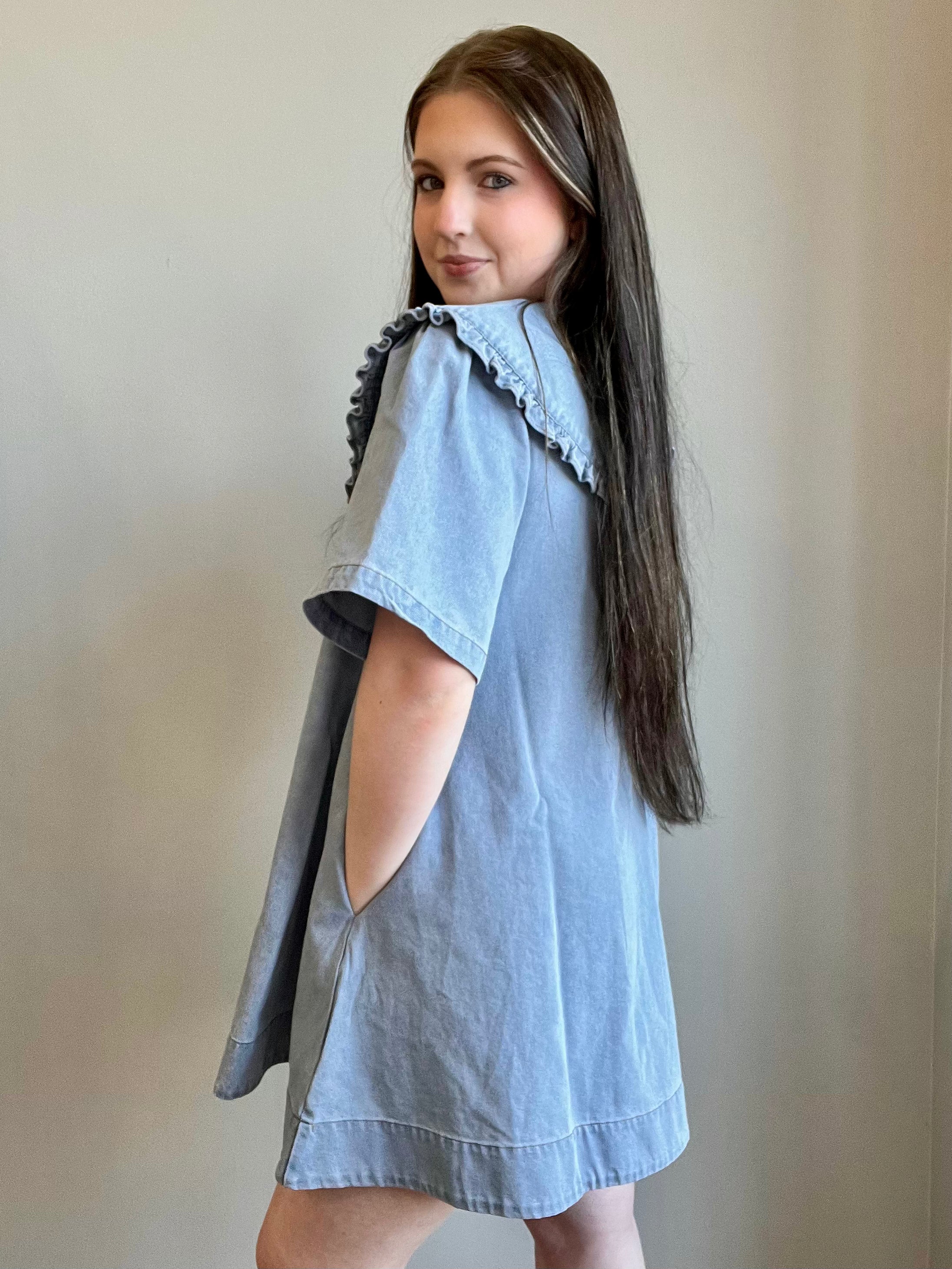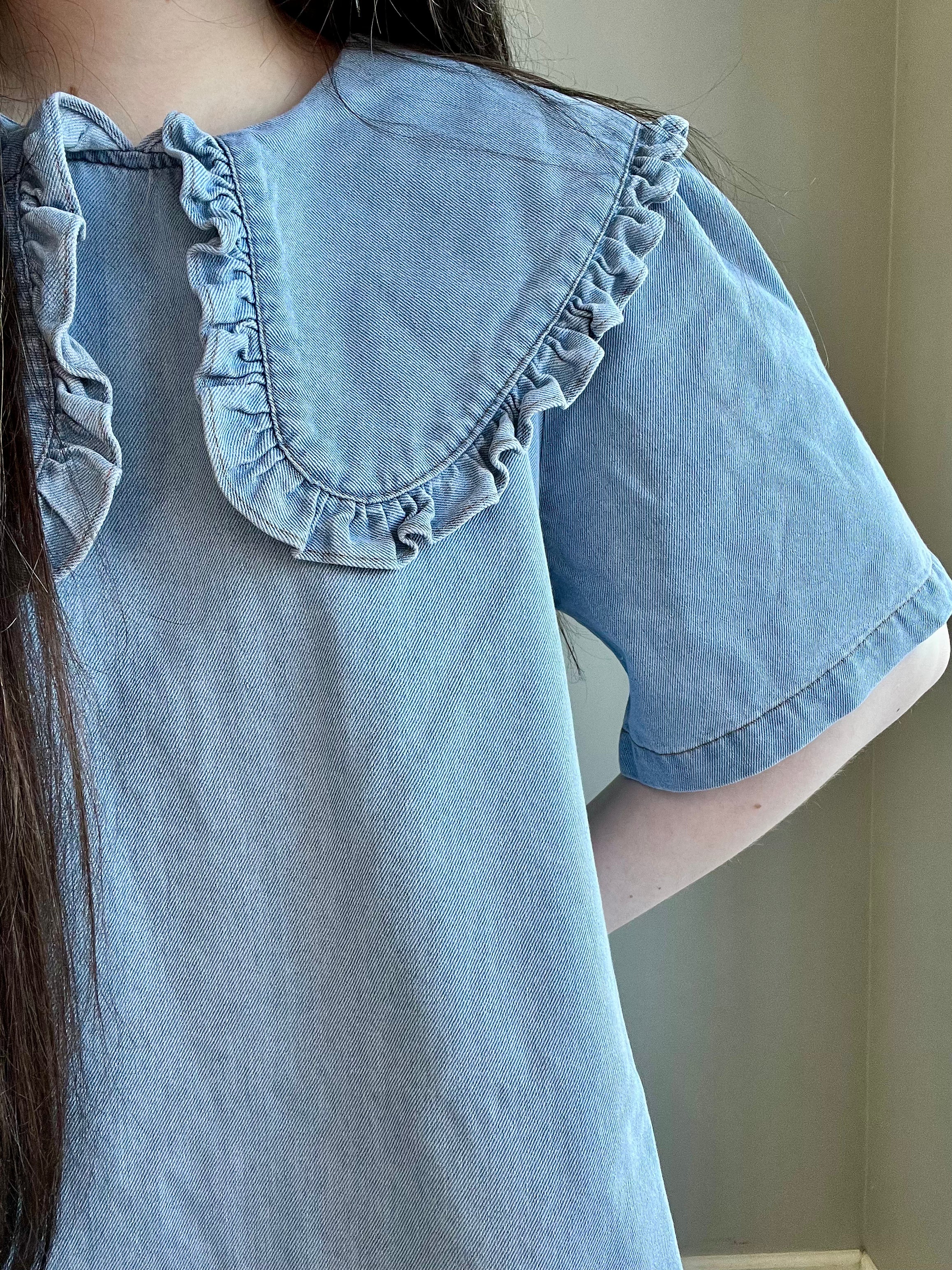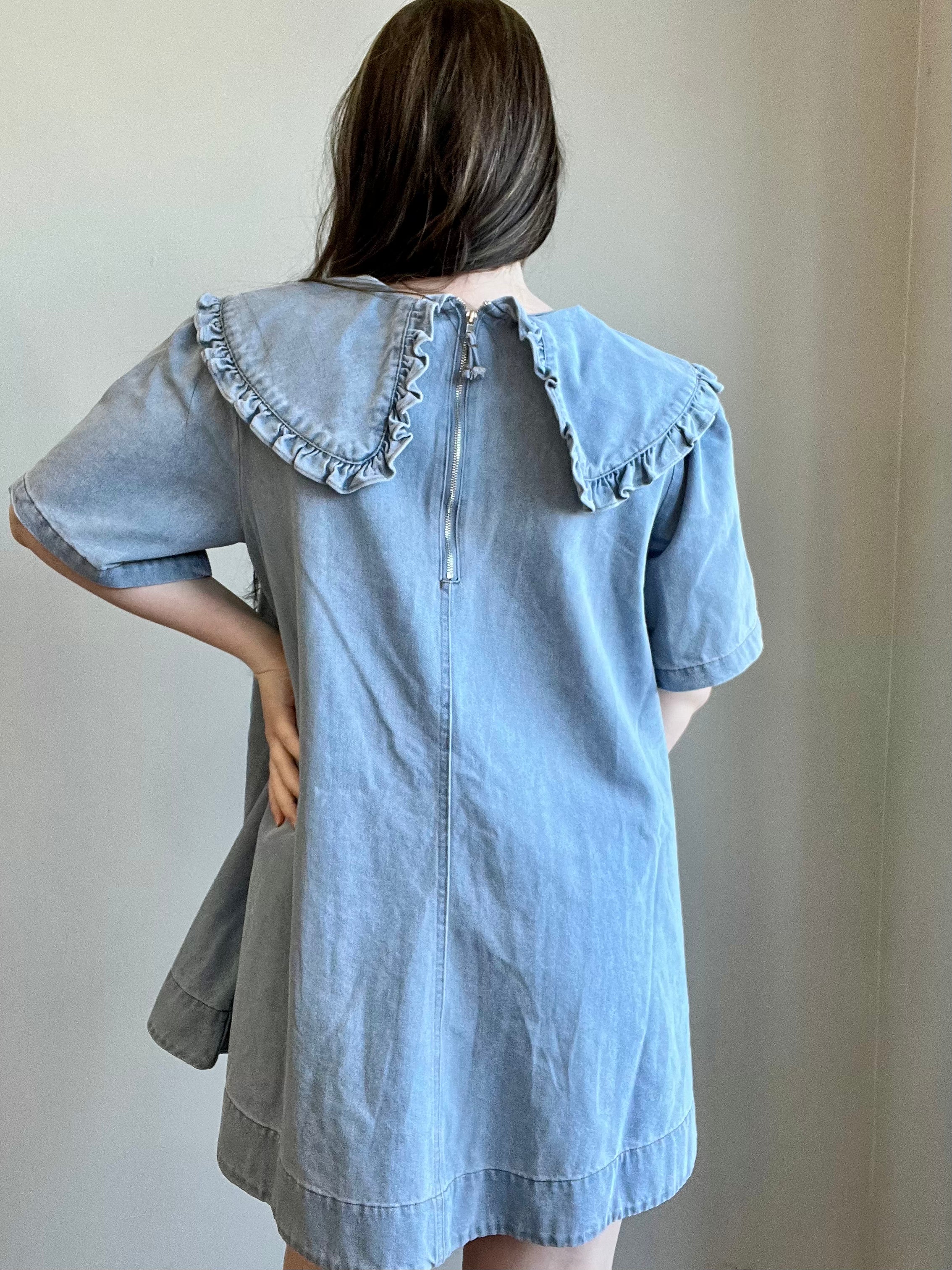 Vintage Denim Babydoll Dress with Ruffled Collar