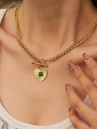 18K Gold Plated Non-Tarnish Green Heart Chain Necklace