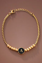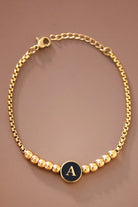 Gold Beaded Initial Bracelet – Custom Letter Charm