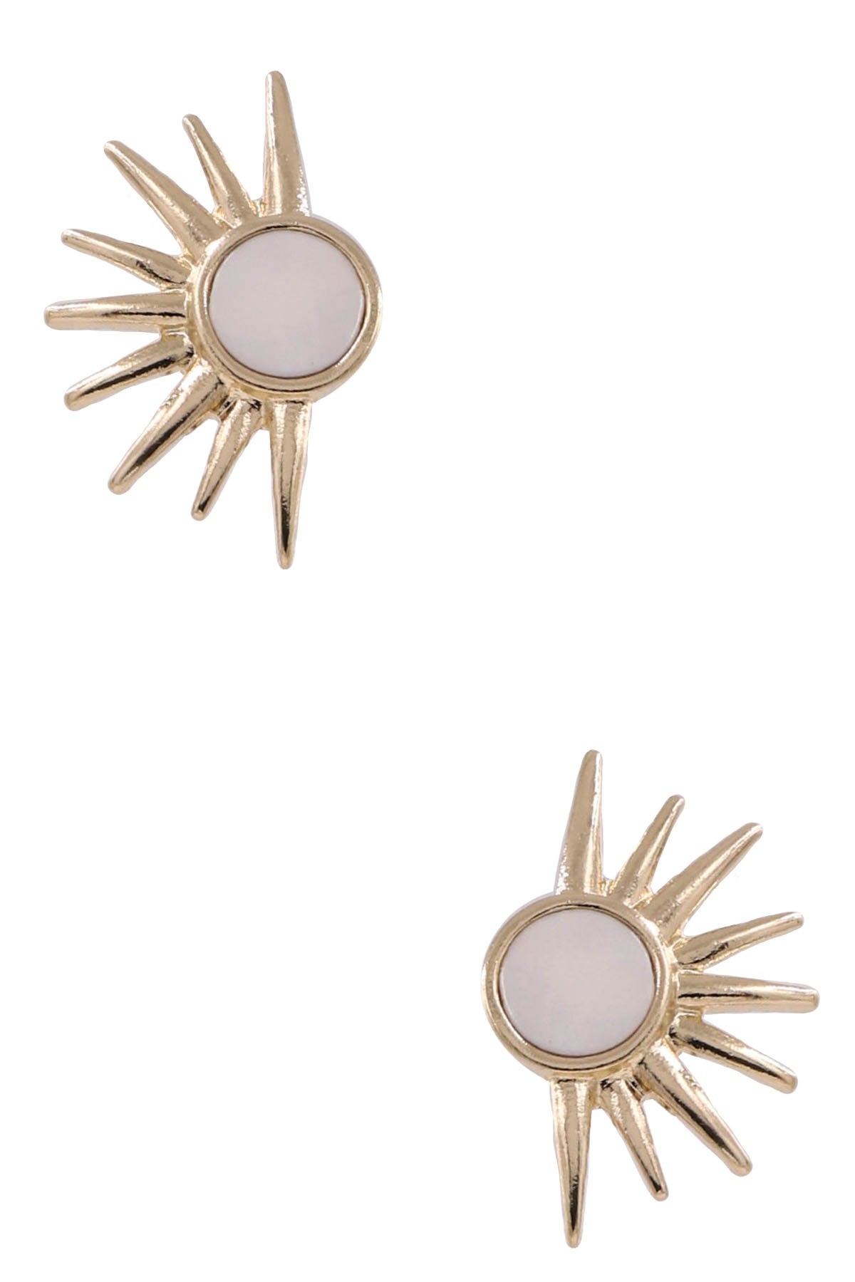 Description: Elevate your style with these exquisite metal mother of pearl post earrings. Featuring a stunning sunburst design, these earrings are perfect for adding a touch of elegance to any outfit. Crafted with a beautiful mother of pearl center, these earrings are both unique and versatile. Available in both gold and silver to match your personal style.