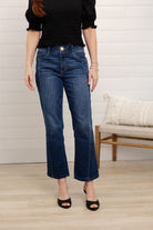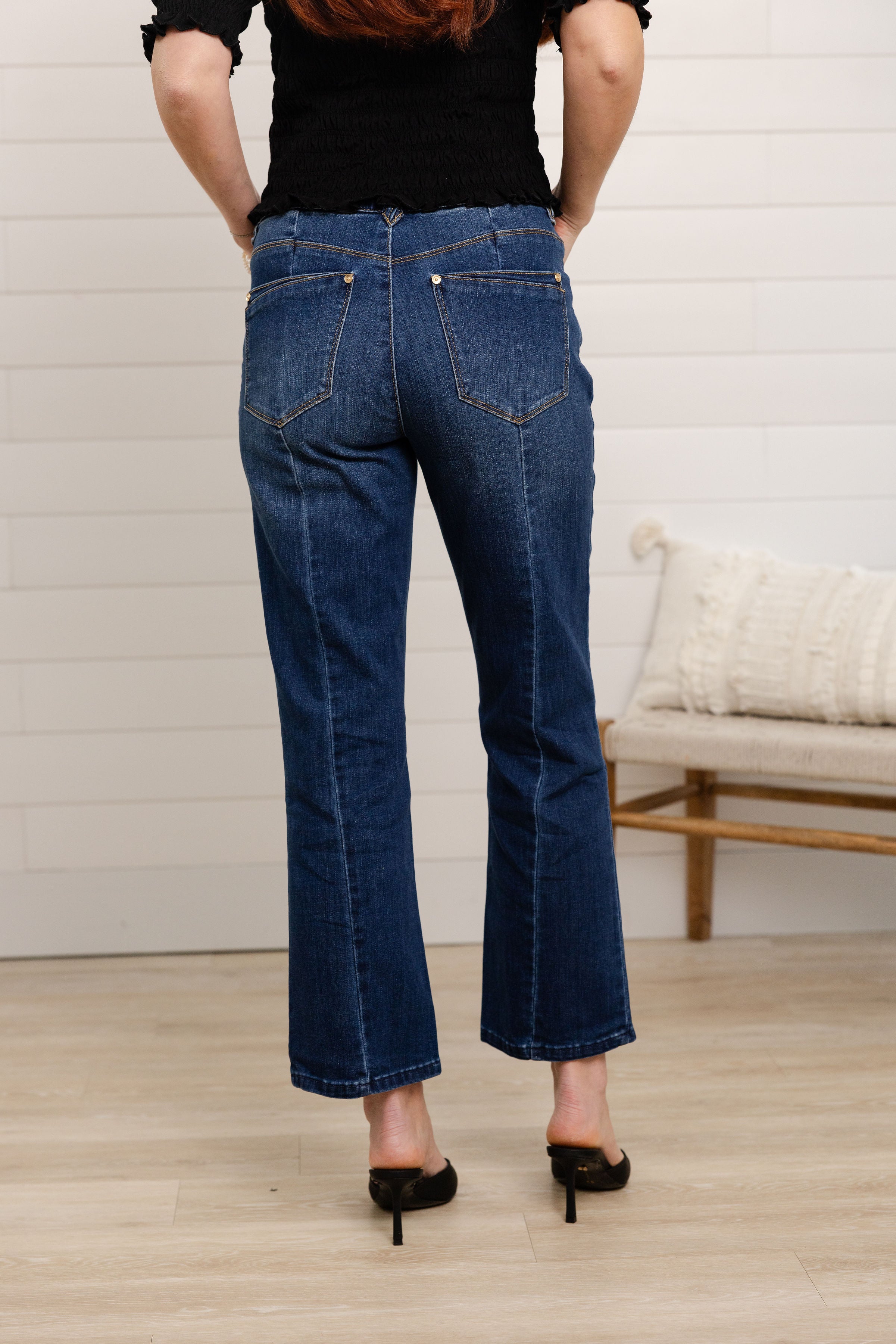 Finished in a classic medium-dark wash with subtle front seam detailing, this barely boot style delivers just the right amount of shape—polished, timeless, and endlessly wearable.