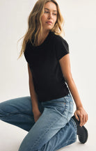 The perfect black tee you’ll reach for again and again. Pair with high-rise denim and sneakers for casual days, layer with a leather jacket for edge, or tuck into tailored trousers for a clean, polished look.