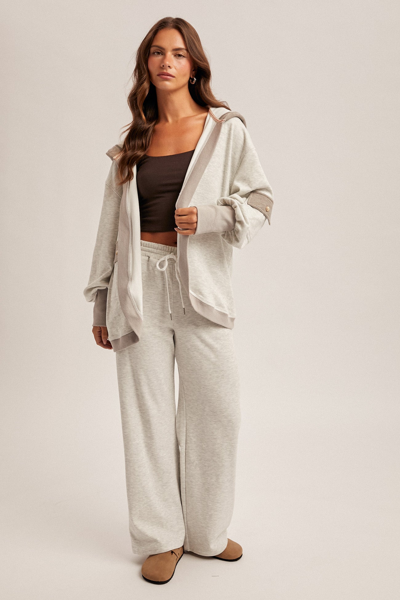 Your new everyday layer is here. This soft & cozy hooded cardigan blends relaxed comfort with modern style, featuring subtle color-block detailing, an oversized fit, and the perfect mid-weight drape. The open-front silhouette makes it effortless to throw on and go, while the roomy hood and cuffed sleeves add that elevated lounge-meets-streetwear feel.
