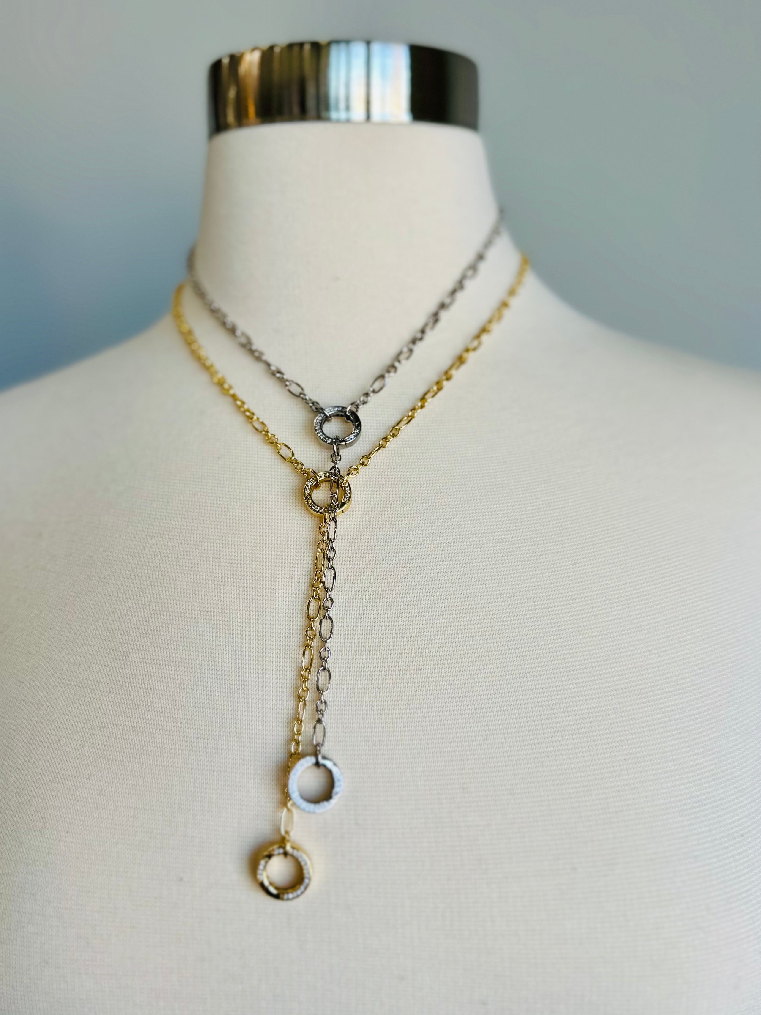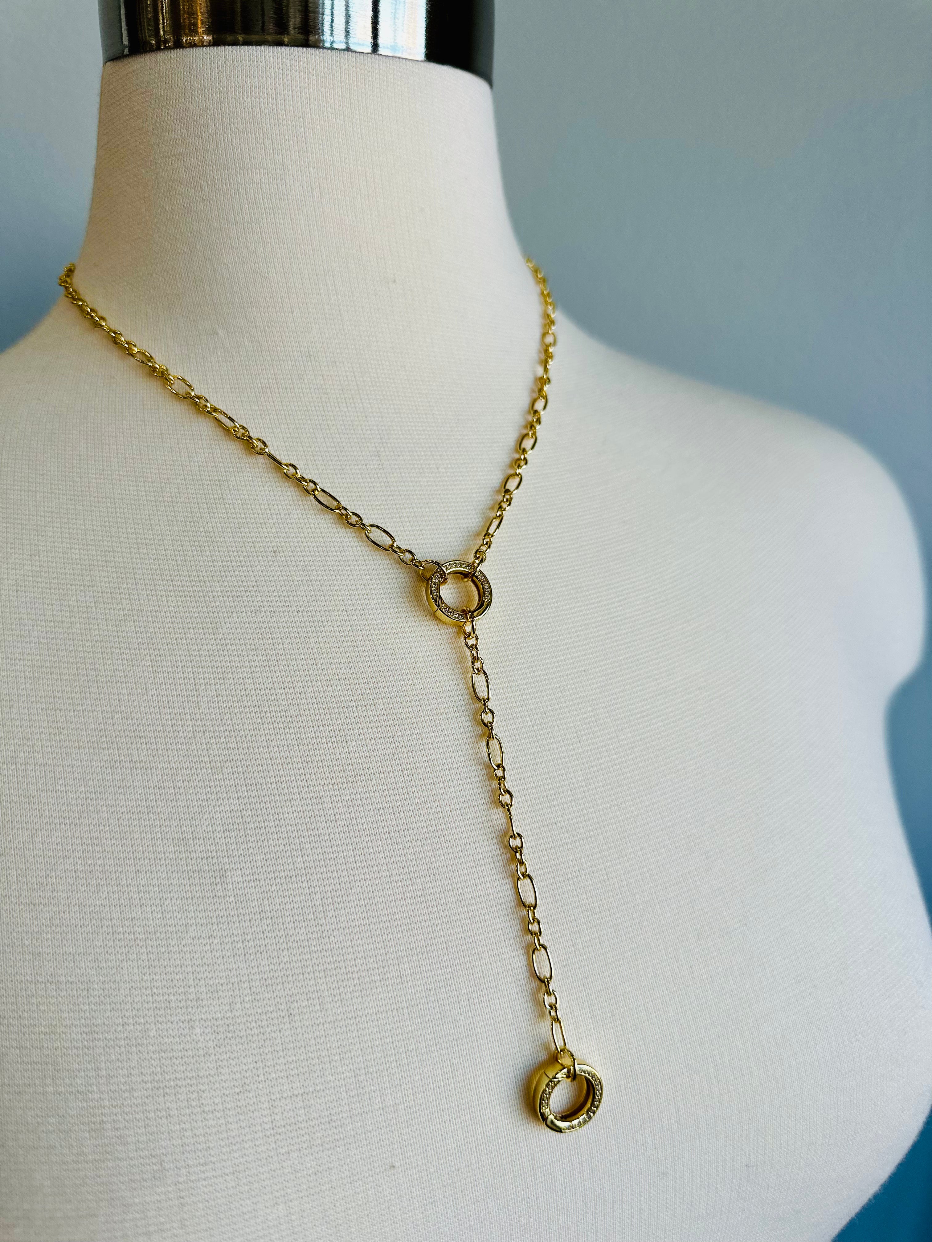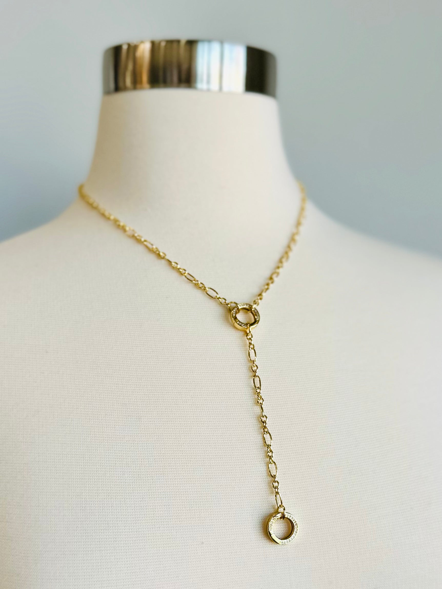 A versatile piece you’ll reach for again and again—this delicate chain necklace features a removable lariat drop, giving you multiple styling options in one. Wear it as a classic chain for a clean, minimal look, or add the lariat for a more elevated, elongating silhouette. Finished with subtle ring details, it’s the perfect balance of modern and timeless.