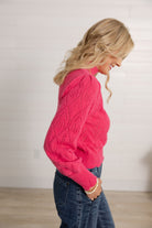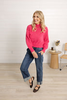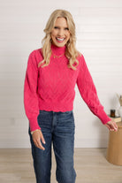 Make a bold statement this season with this exclusive Mac and Me sweater, designed just for Mainstream Boutique. In a vibrant hot pink hue, this mock neck knit adds a cheerful pop of color while keeping things cozy and chic. The intricate pointelle pattern, scalloped hem, and puffed sleeves give it a feminine, elevated touch—perfect for dressing up denim or pairing with skirts for a standout look.