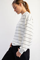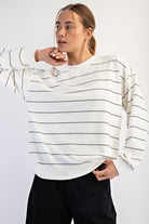 Timeless, minimal, and effortlessly chic — this striped long sleeve top is one you’ll reach for season after season. Made from a silky-smooth modal poly scuba fabric, it offers a soft, lightweight feel that drapes beautifully and moves with you. Designed with a relaxed fit, dropped shoulders, and a classic crew neckline, it’s the perfect blend of comfort and polish.