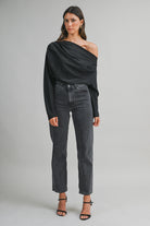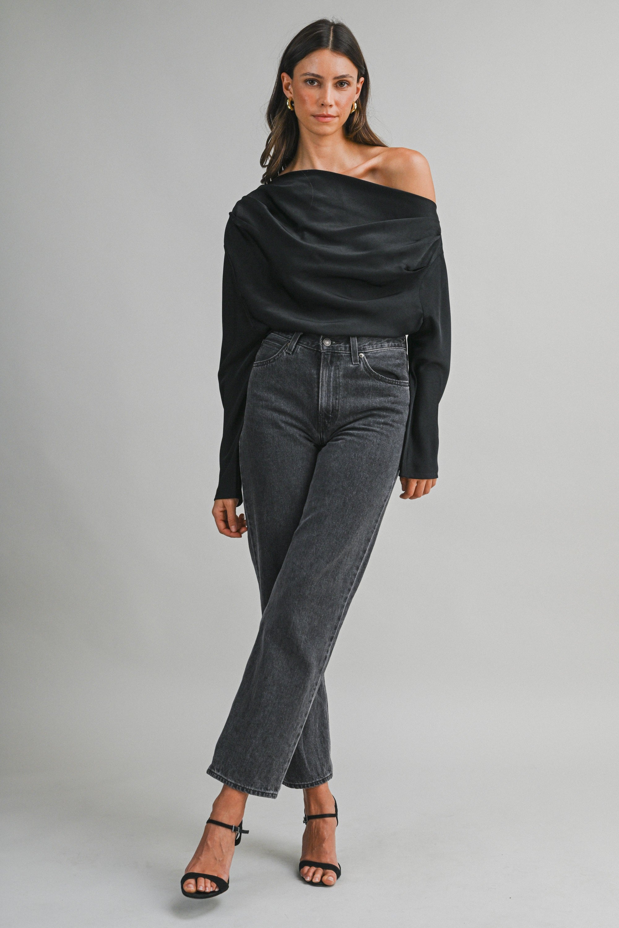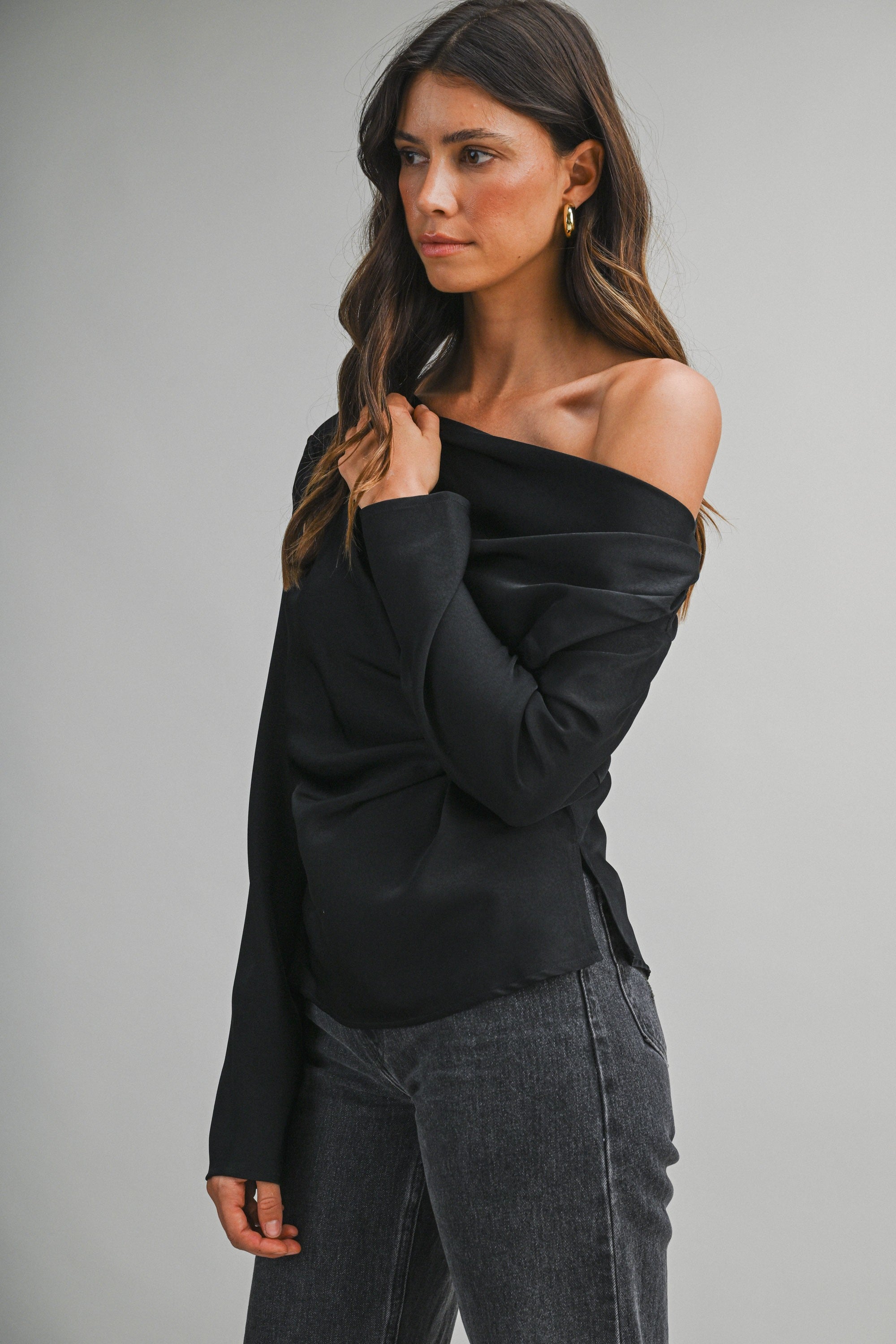 Elevate your night-out wardrobe with this stunning draped satin blouse, designed to make an effortlessly chic statement. The fluid one-shoulder neckline creates a elegant asymmetry, while the soft, cascading drape across the front adds movement and sophistication. Finished with a subtle side-slit hem for easy styling, this top pairs beautifully with denim, tailored trousers, or a sleek skirt.