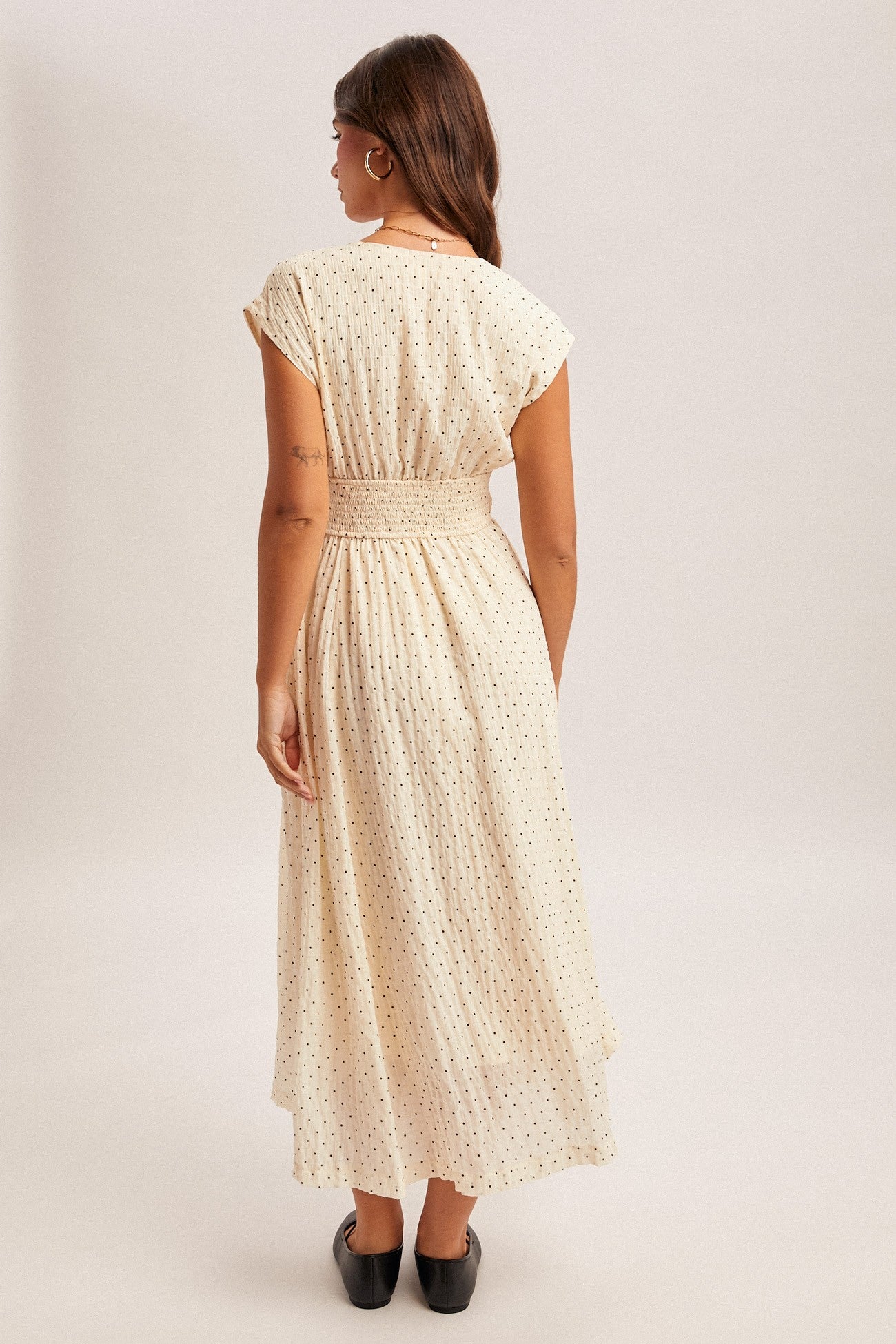 Polka Dot Twist Front Smocked Back V-Neck Maxi Dress