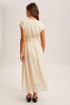 Romantic, flattering, and effortlessly feminine. The Polka Dot Twist Front Smocked Back V-Neck Maxi Dress is designed to highlight your shape while keeping comfort front and center. Featuring a textured polka dot fabric, a soft V-neckline, and a twisted front detail at the bust, this dress creates a beautifully flattering silhouette.