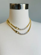 Radiant, refined, and endlessly versatile—the Aurora Necklace is designed to be your go-to statement piece. A sleek link chain is elevated by a row of mock brilliant-cut cubic zirconia, creating the perfect balance of timeless elegance and modern edge.