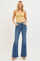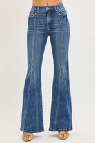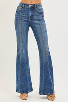 Designed to flatter and sculpt in all the right places, these high-rise flare jeans feature built-in tummy control for a smooth, confident fit. The front seam detail elongates the leg, while the dramatic flare silhouette balances the hips and creates an effortlessly chic shape. Crafted from a soft, stretch denim blend, they offer comfort, structure, and just the right amount of give for all-day wear.