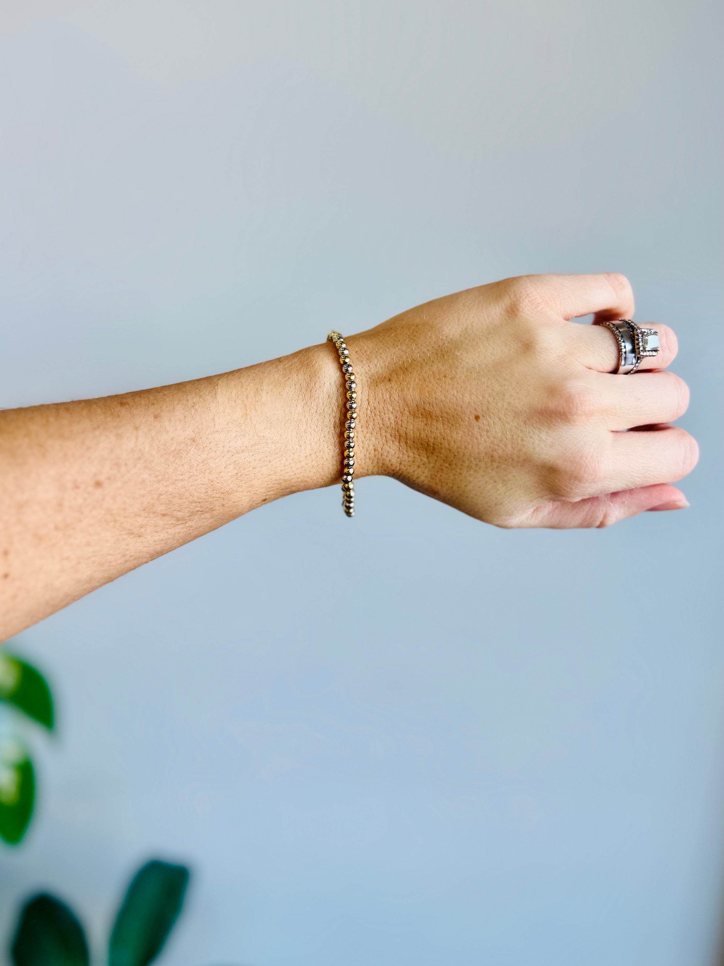 Two-Tone Gold & Silver Stretch Bracelet – Waterproof & Tarnish-Resistant