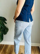 These jeans bring a flirty, feminine twist to everyday denim. The velvet ribbon bows add a sweet, dimensional detail that feels boutique and elevated. Style them with a simple tee, a romantic blouse, or a structured blazer for a mix of charm and polish.