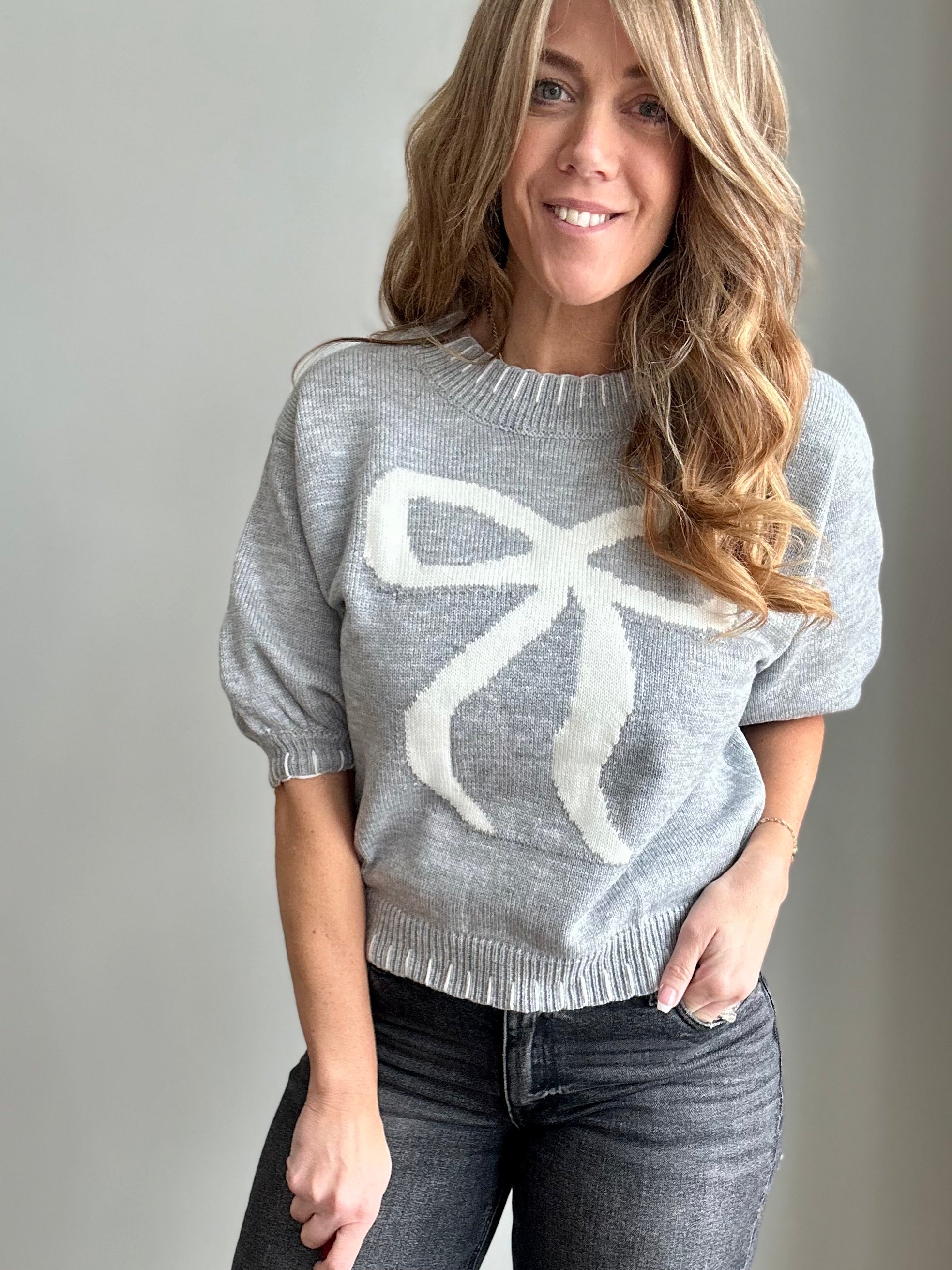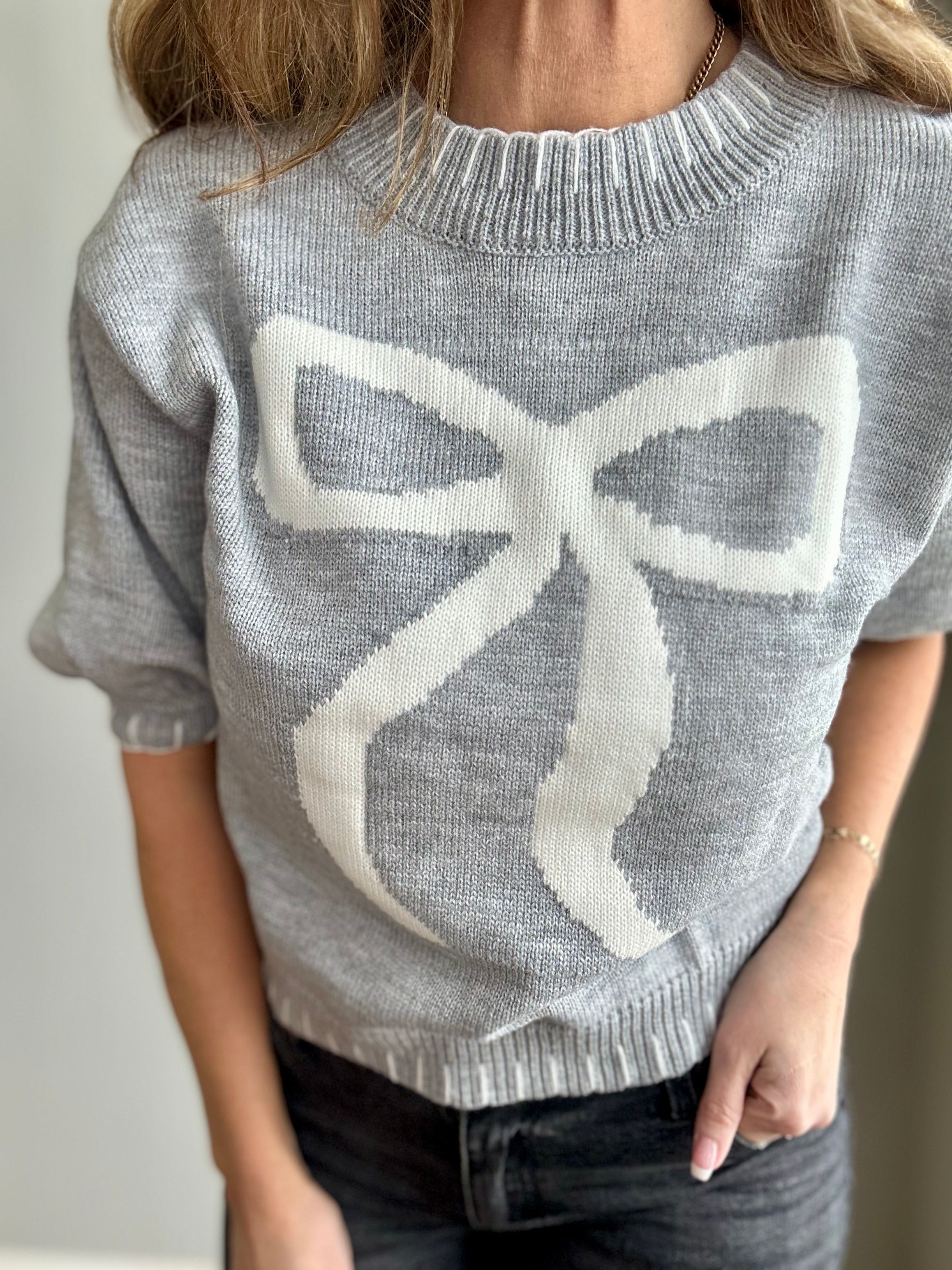 Add a playful yet polished touch to your wardrobe with our Bow-Detail Sweater. This chic knit piece features a charming oversized bow design on the front, perfect for creating an effortlessly feminine look. The subtle puff sleeves and cozy silhouette make it a must-have for cooler days.