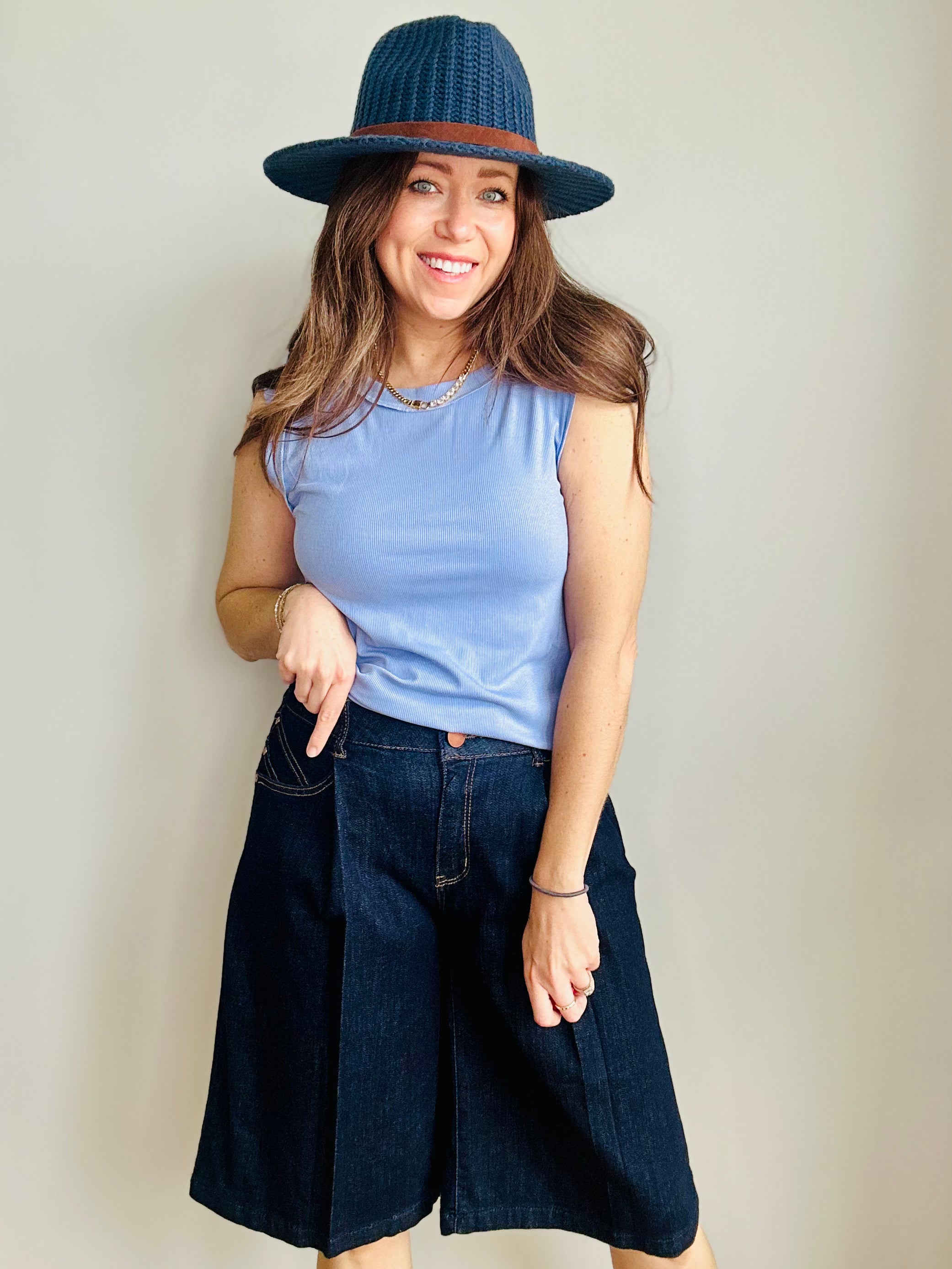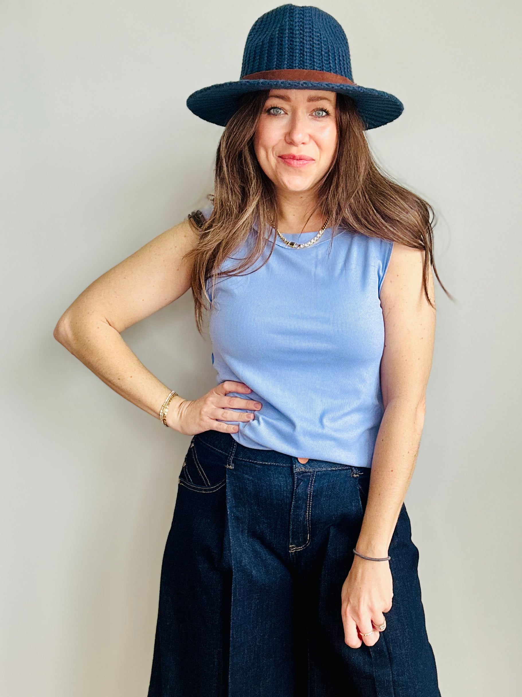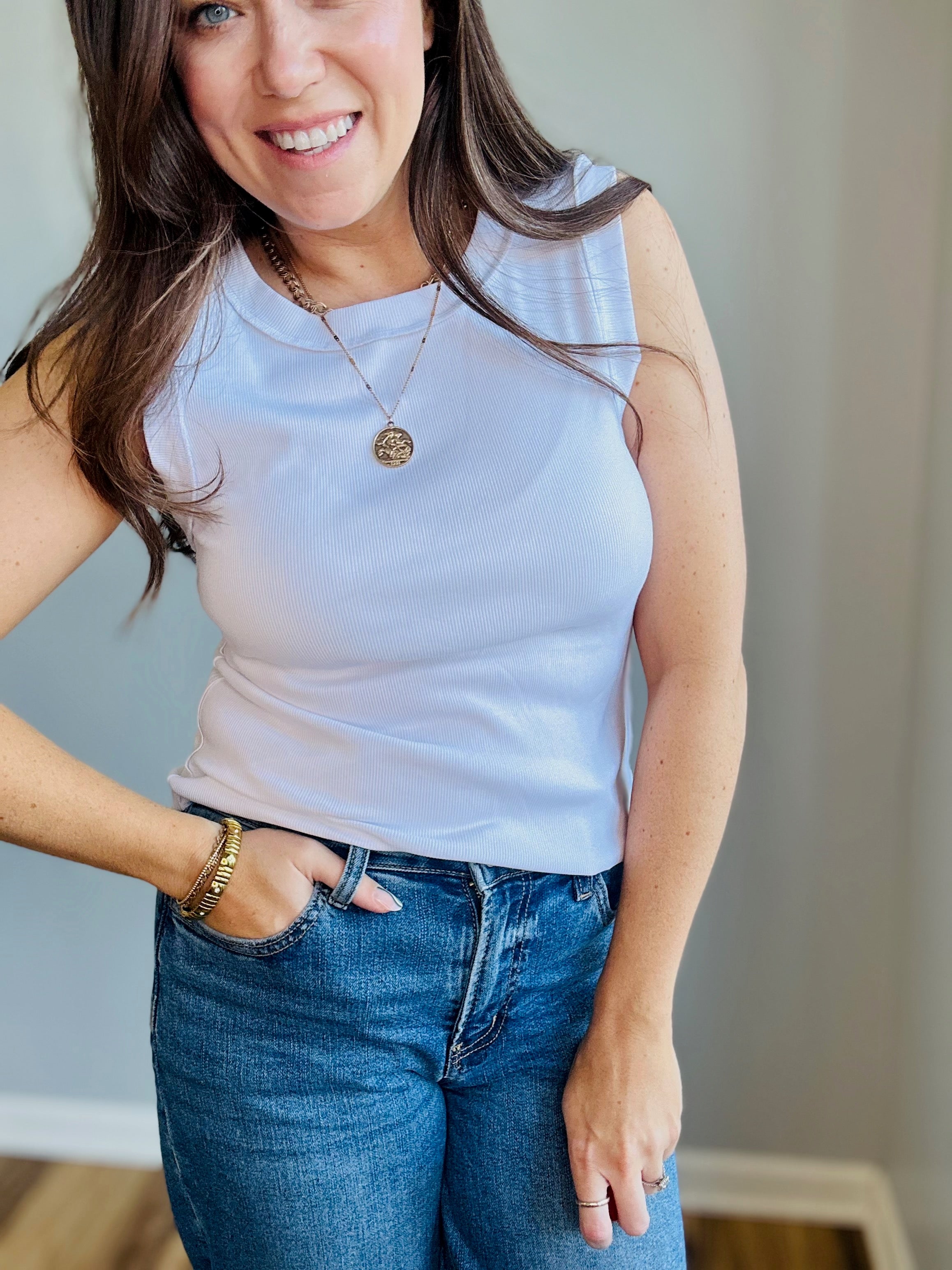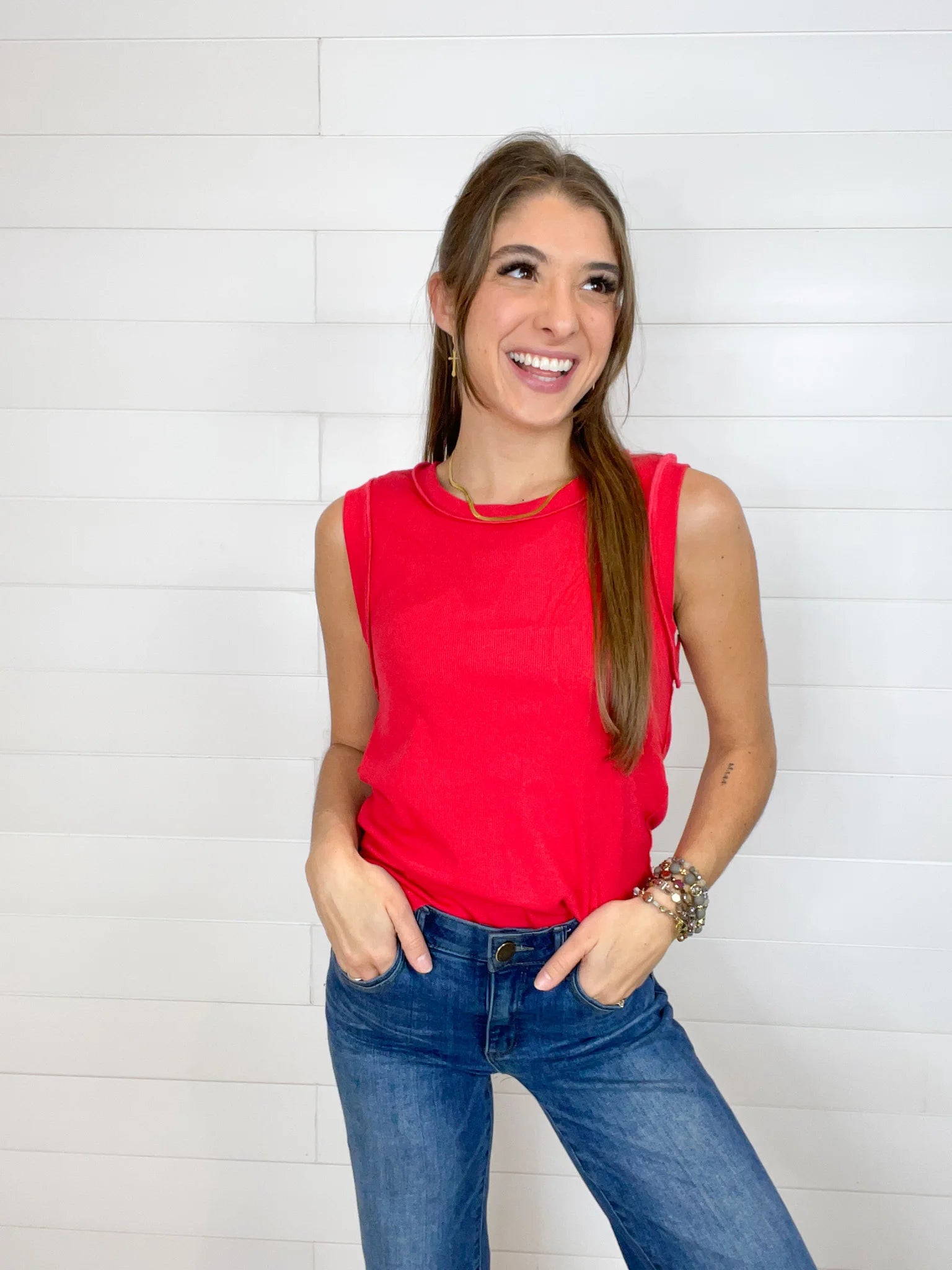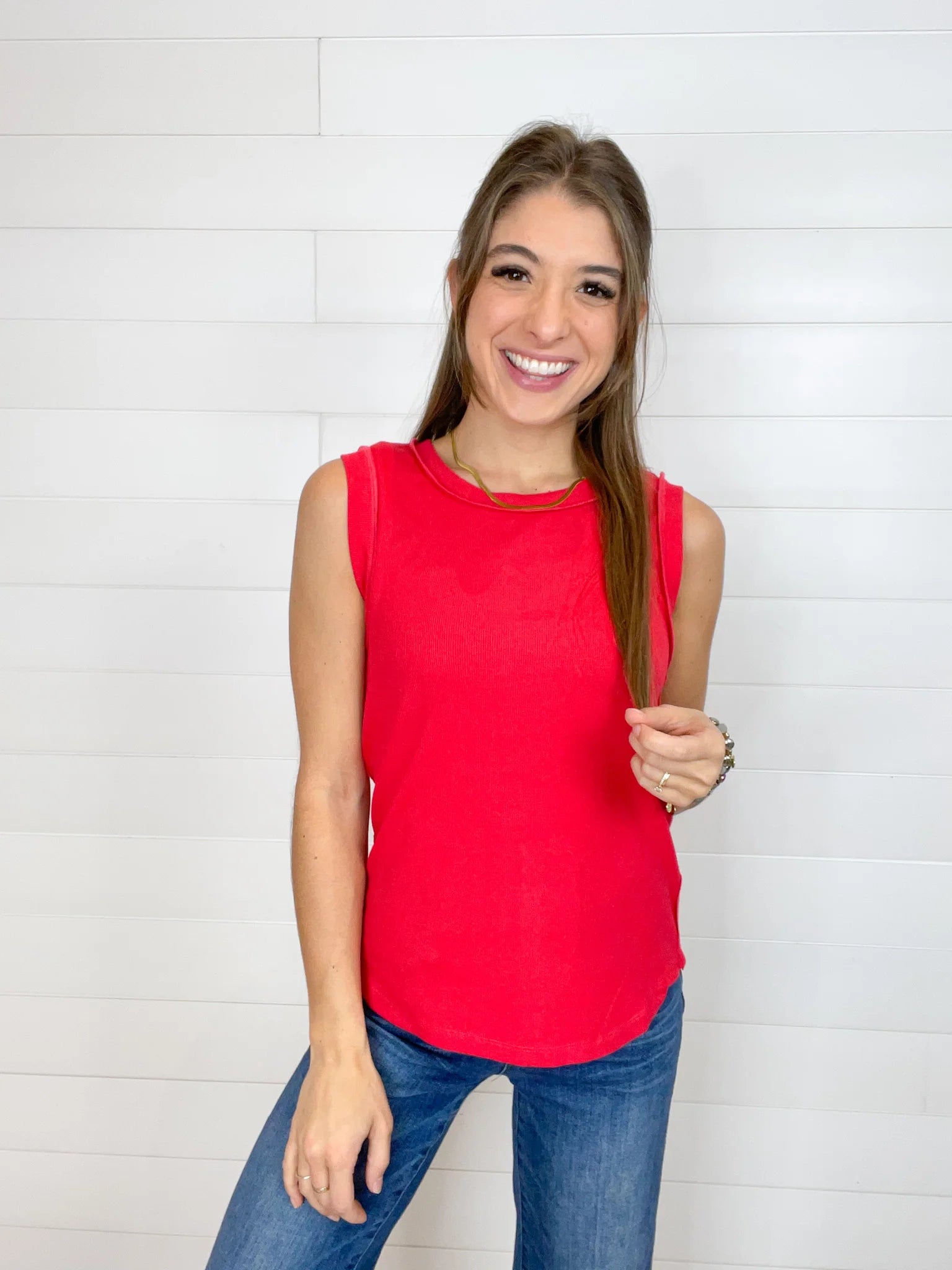 Upgrade your basics with The Essential Ribbed Muscle Tank, a must-have staple that combines effortless style with everyday comfort. Crafted from soft, stretchy ribbed fabric, this sleeveless tank is the perfect layering piece or standalone top for a chic, minimalist look. Featuring a classic crew neckline and a subtle raw-edge finish, this top adds an understated edge to any outfit.