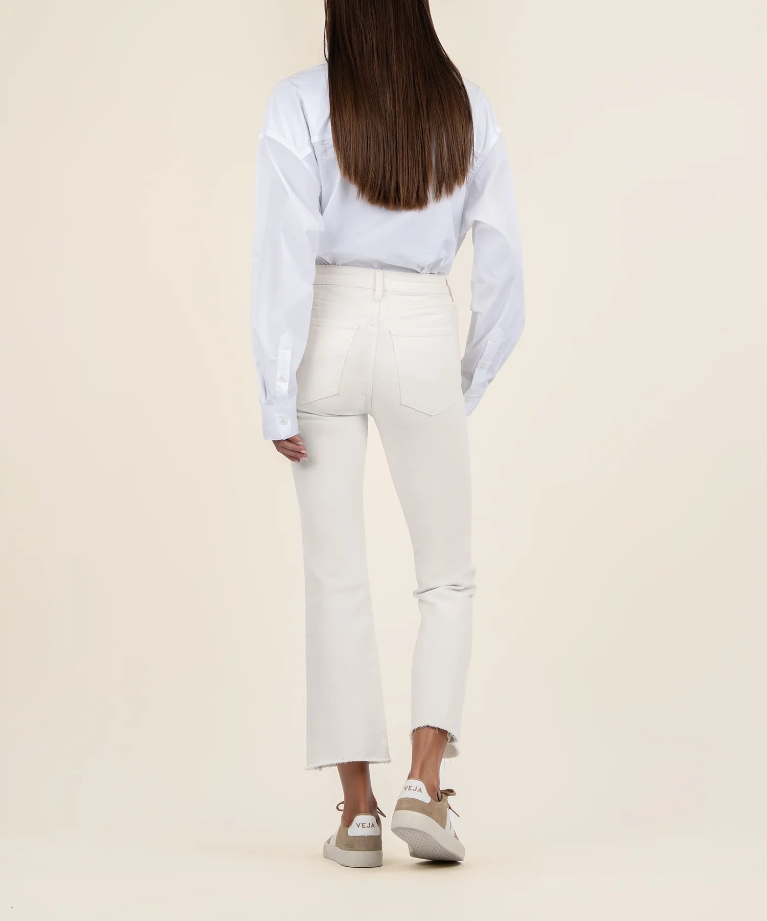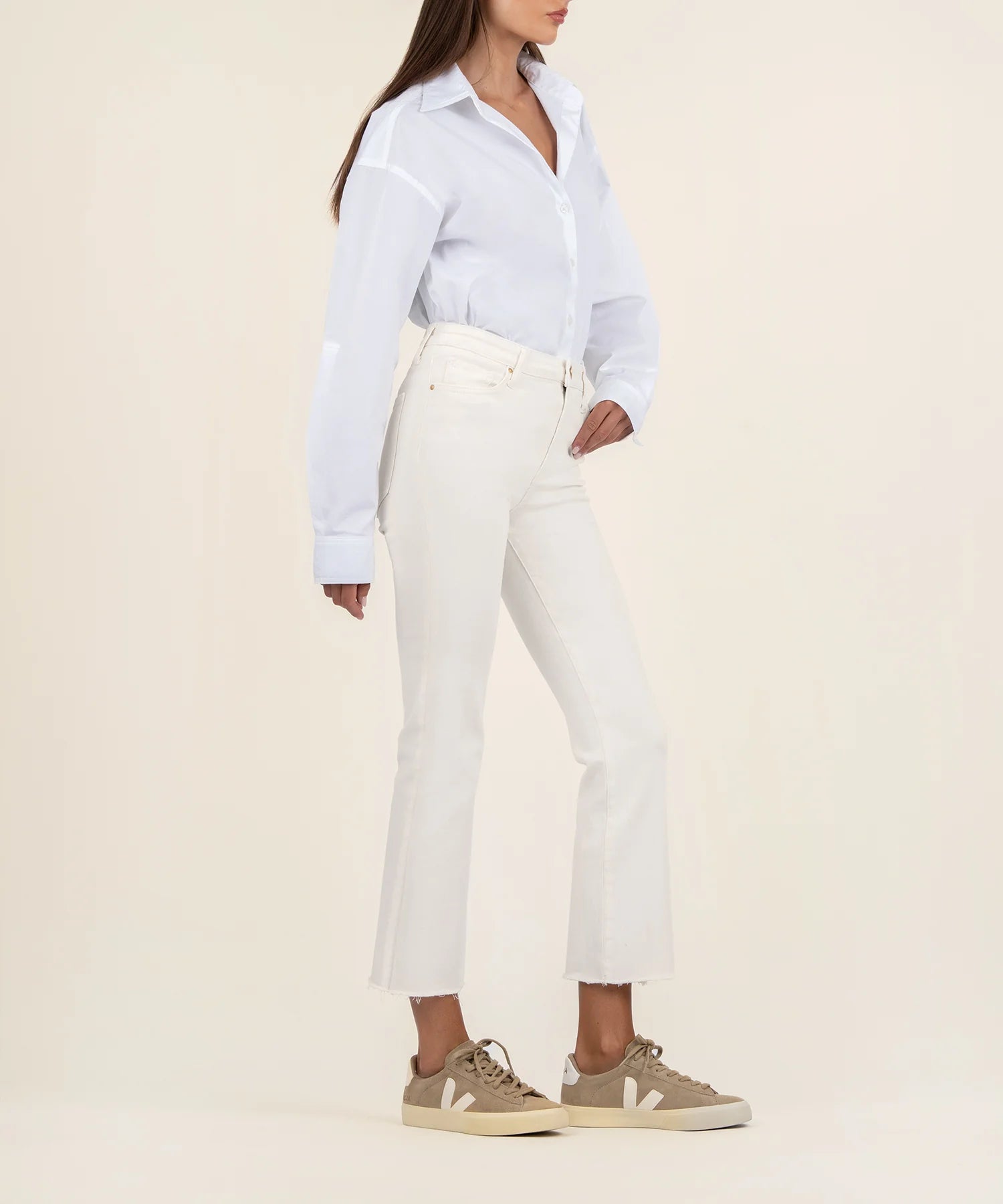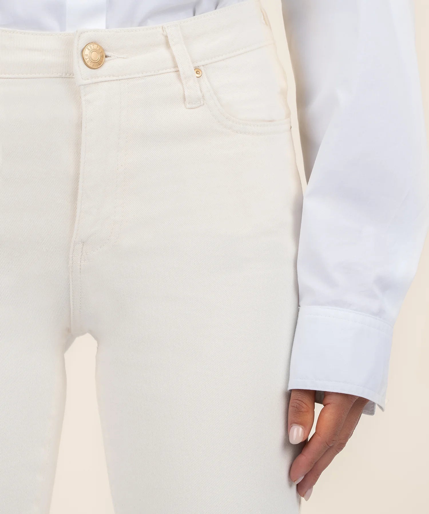 - Create chic monochrome looks in these raw-cropped flare jeans made from smooth stretch denim in a tonal ecru wash.