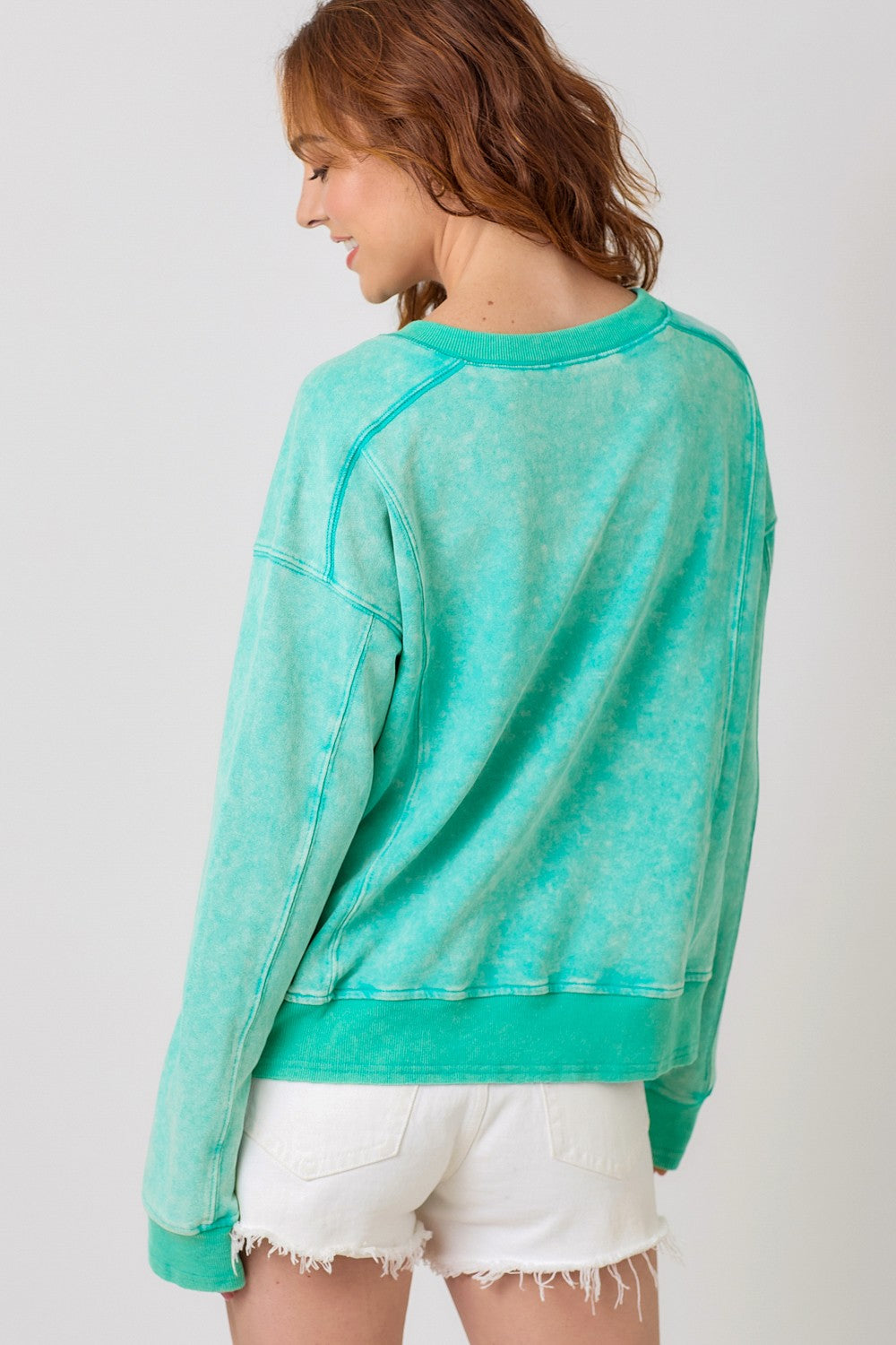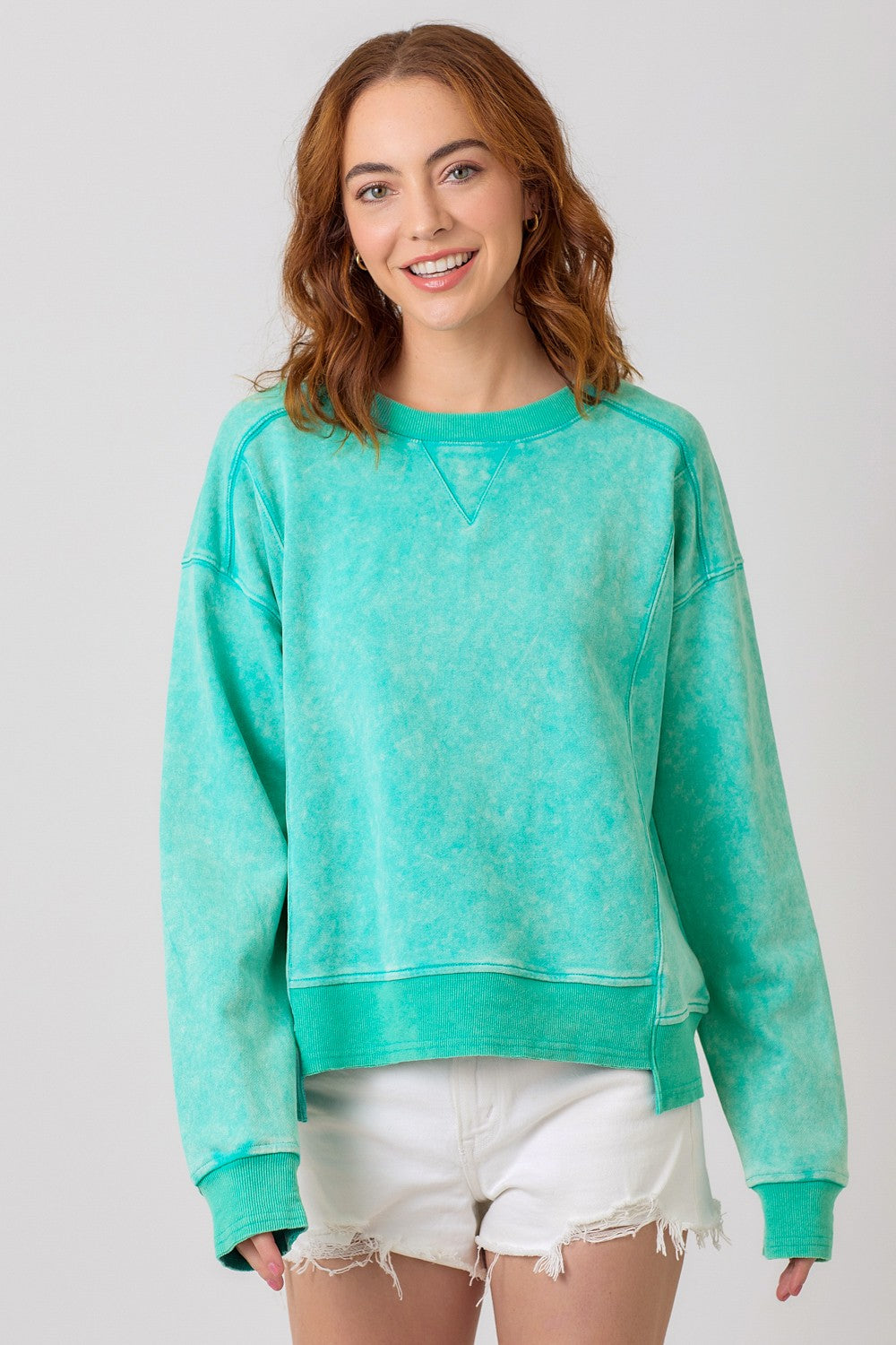 Embrace casual cool with this vintage-washed crewneck sweatshirt in a soft sage green. Crafted for comfort and effortless style, this piece features a relaxed fit, dropped shoulders, and a ribbed hem for a laid-back look. The unique washed finish gives it a lived-in vibe, perfect for weekend lounging or casual outings.