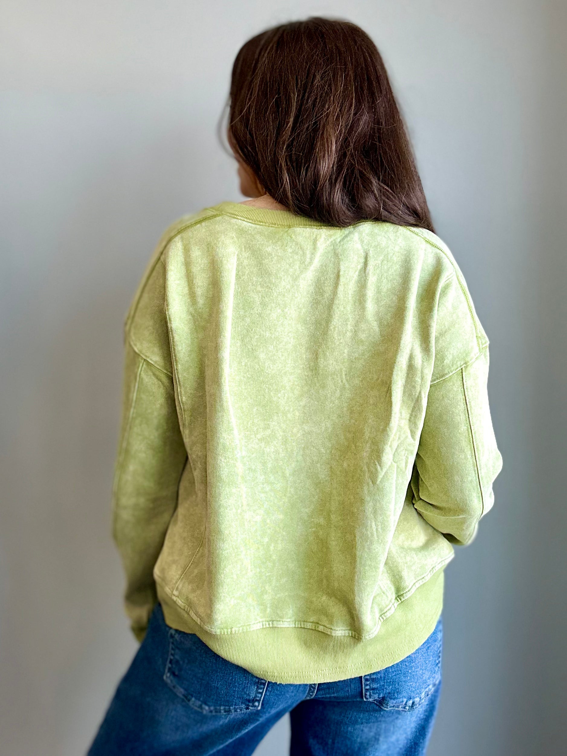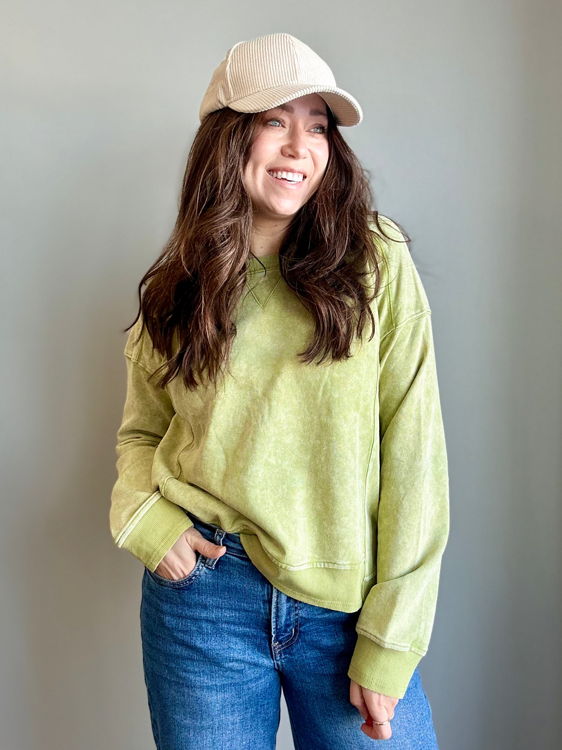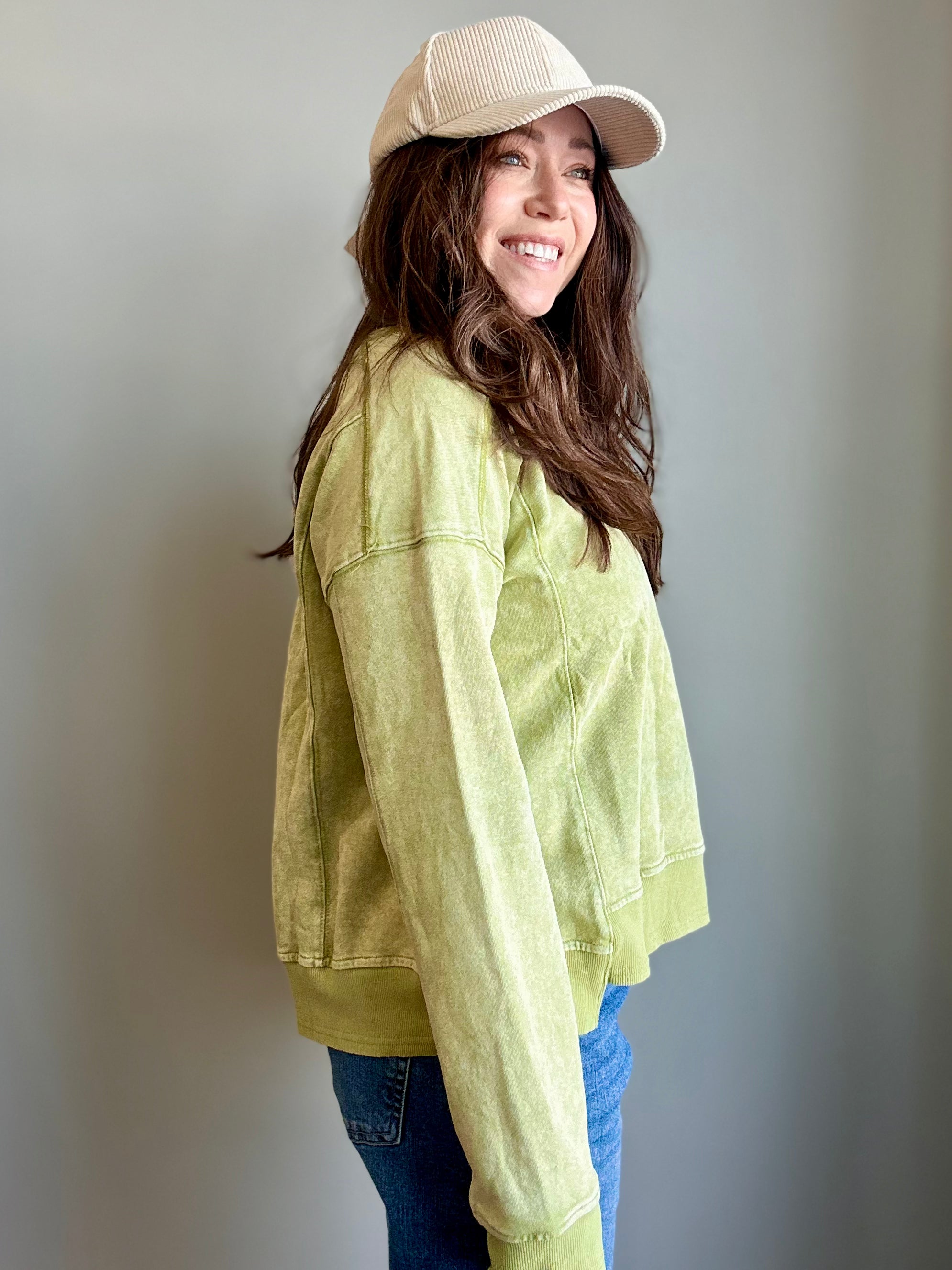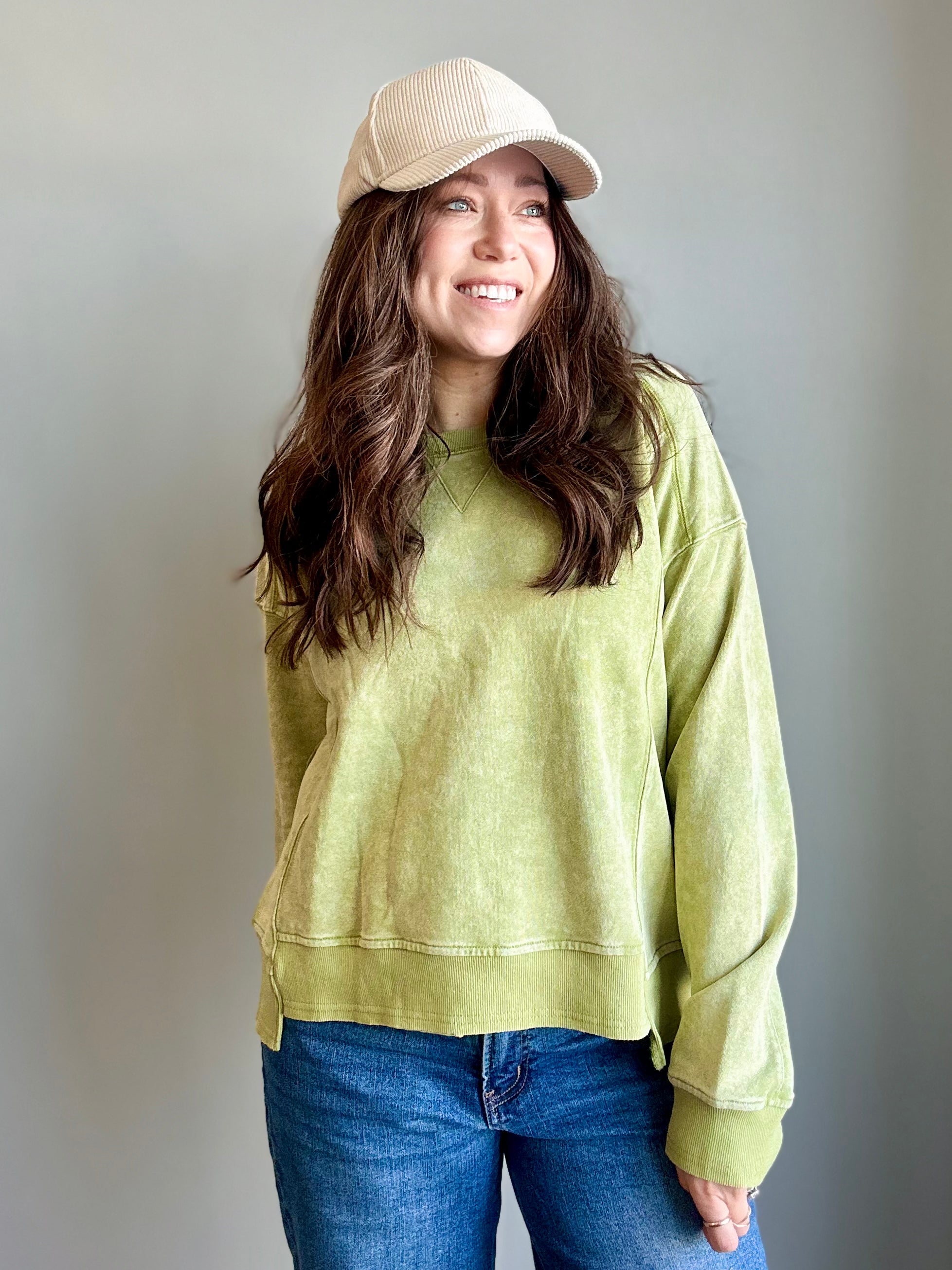 Vintage-Washed Crewneck Sweatshirt in Sage