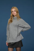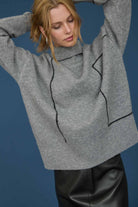 An elevated essential for the cooler season. The Contrast Detail Turtleneck Sweater combines modern minimalism with cozy comfort. Designed with dropped shoulders, ribbed trim, and bold black contrast stitching, it adds subtle edge to a timeless silhouette. The relaxed fit and soft recycled yarn blend make it a sustainable, style-forward choice for everyday wear.