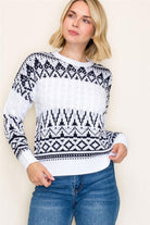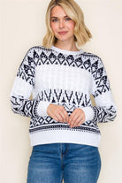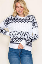 Fair Isle Cable Knit Sweater – Navy & White