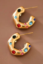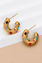 Playful yet polished, these small C-shaped hoops add an instant burst of color and charm to any outfit. Crafted from 18K gold-dipped stainless steel and adorned with vibrant multi-colored crystals, they bring a joyful twist to a timeless silhouette.