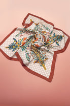 A timeless accessory with endless styling potential. This square bandana scarf features a vintage-inspired floral print with warm, earthy tones—perfect for adding a touch of color and texture to your everyday wardrobe. Wear it as a classic neck scarf, tie it in your hair, wrap it at the wrist, or style it on the handle of your favorite bag for an effortless finishing touch.