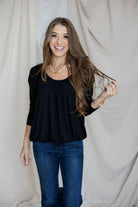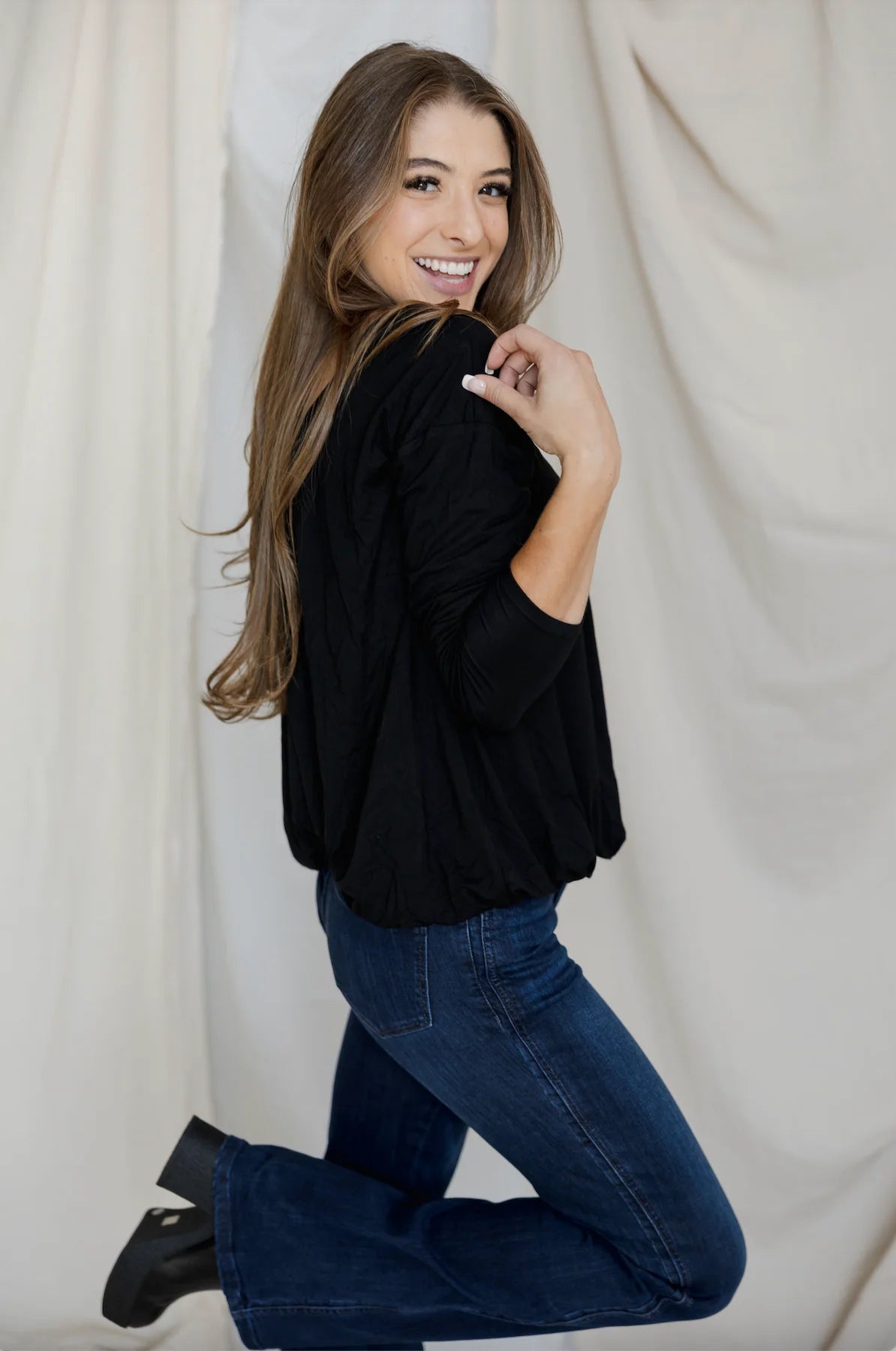 Meet the top that does all the work for you. Designed with a built-in underlayer, this fan-favorite creates the look of a perfectly tucked blouse—no adjusting, smoothing, or fussing required. Crafted in our signature buttery-soft fabric, it drapes beautifully, flatters every shape, and offers unbelievable comfort and stretch. The result? An effortlessly polished silhouette with all the forgiveness you want and all-day ease you’ll love.