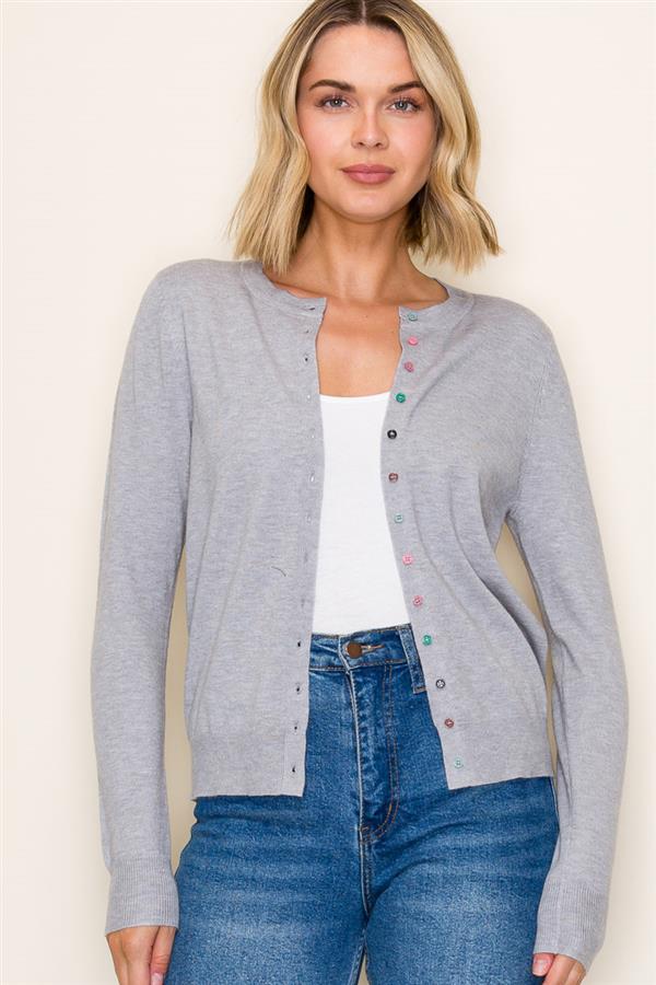 Multi-Color Button Crew Neck Cardigan