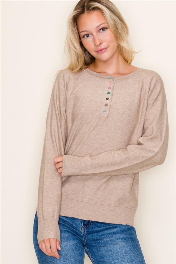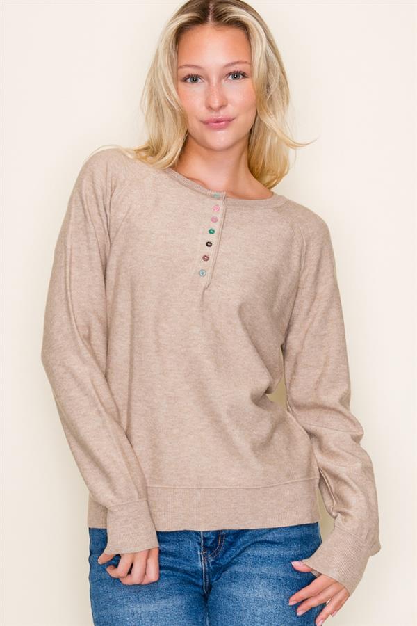 Multicolor Button Henley Sweater