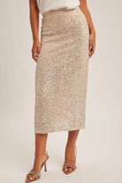 Shimmer and shine your way through the season in this Sequin Maxi Skirt, designed to make every occasion feel special. Covered in light-catching sequins from waist to hem, this piece brings instant glamour — whether you’re styling it for a holiday soirée, date night, or a New Year’s celebration.
