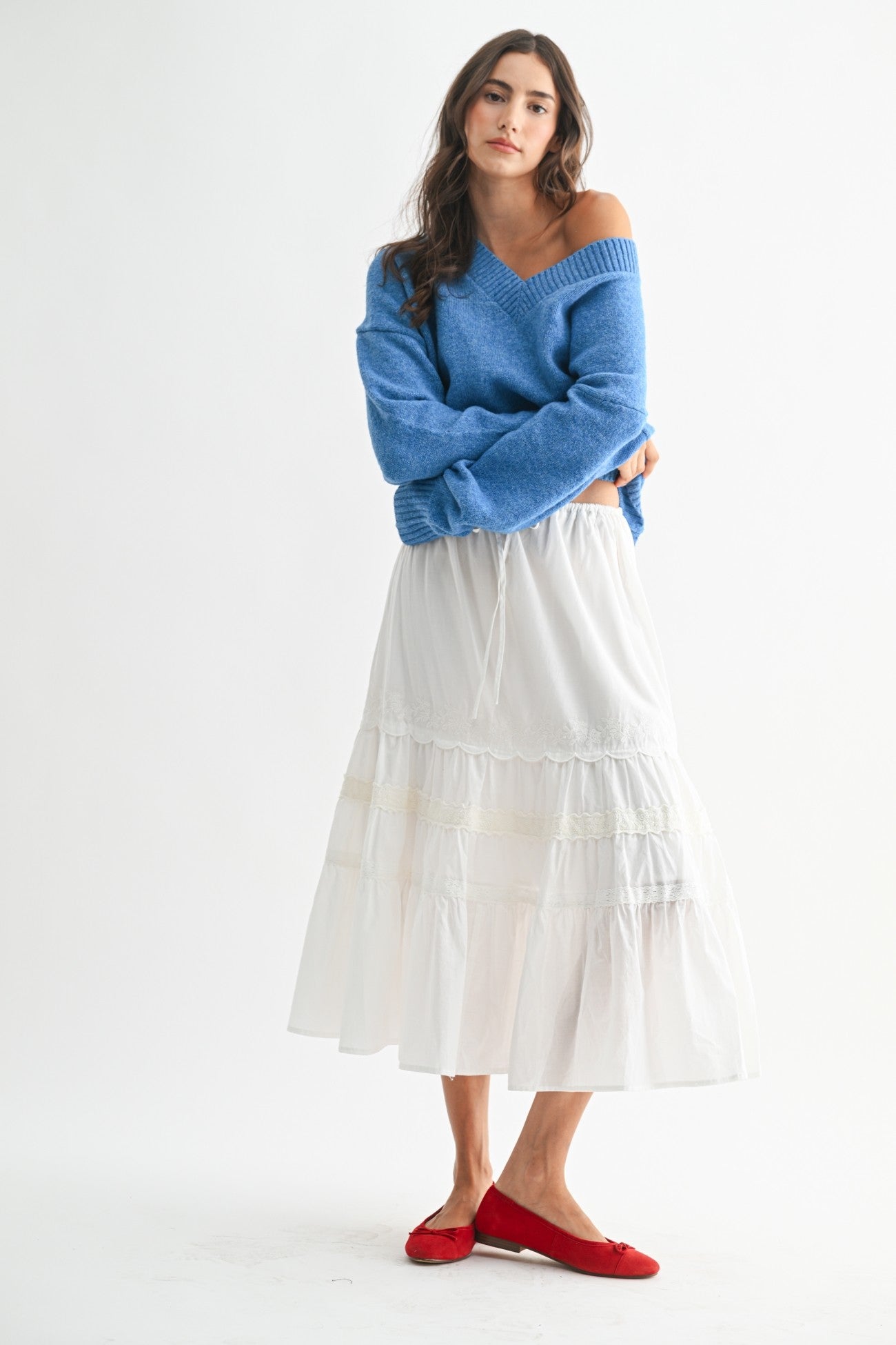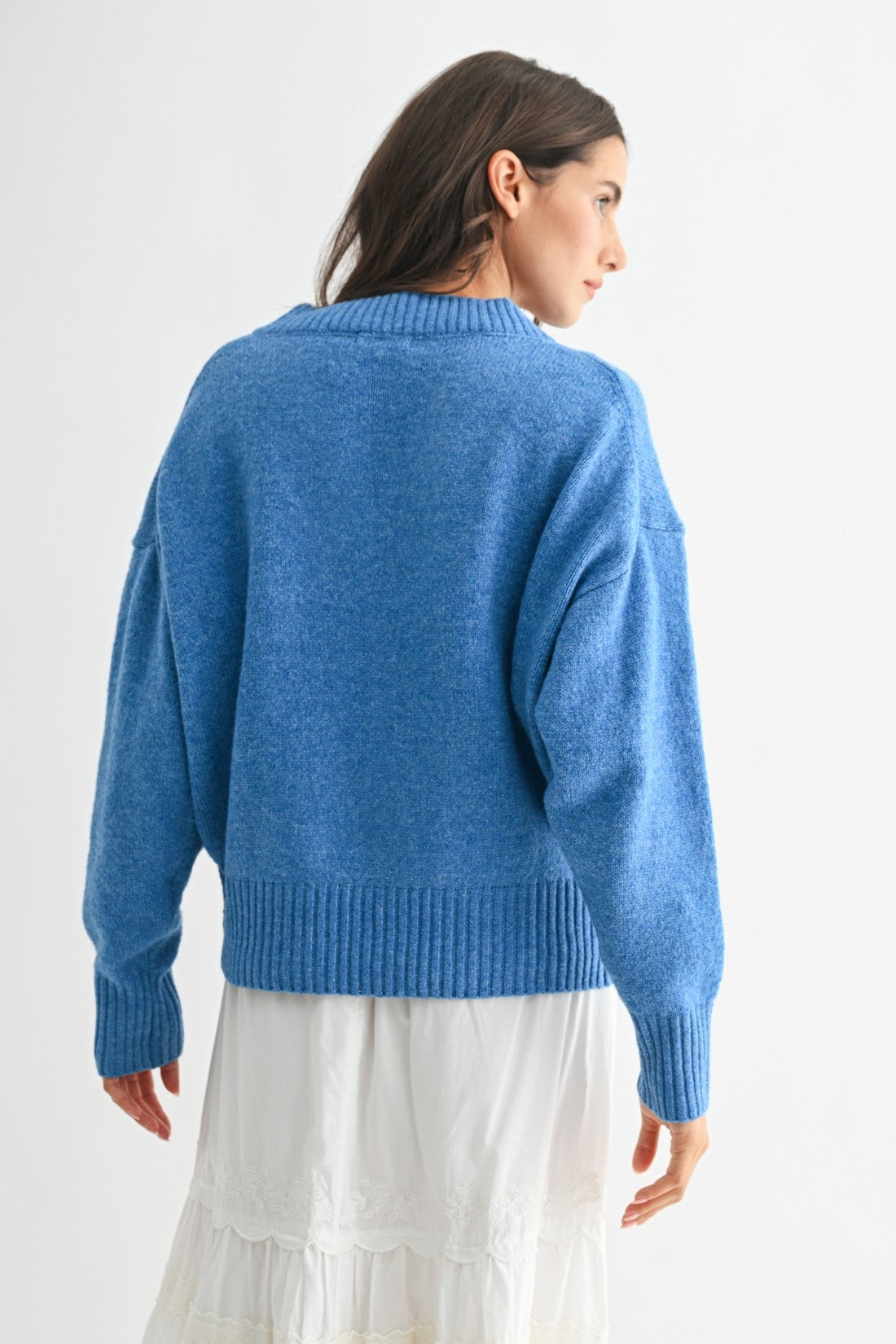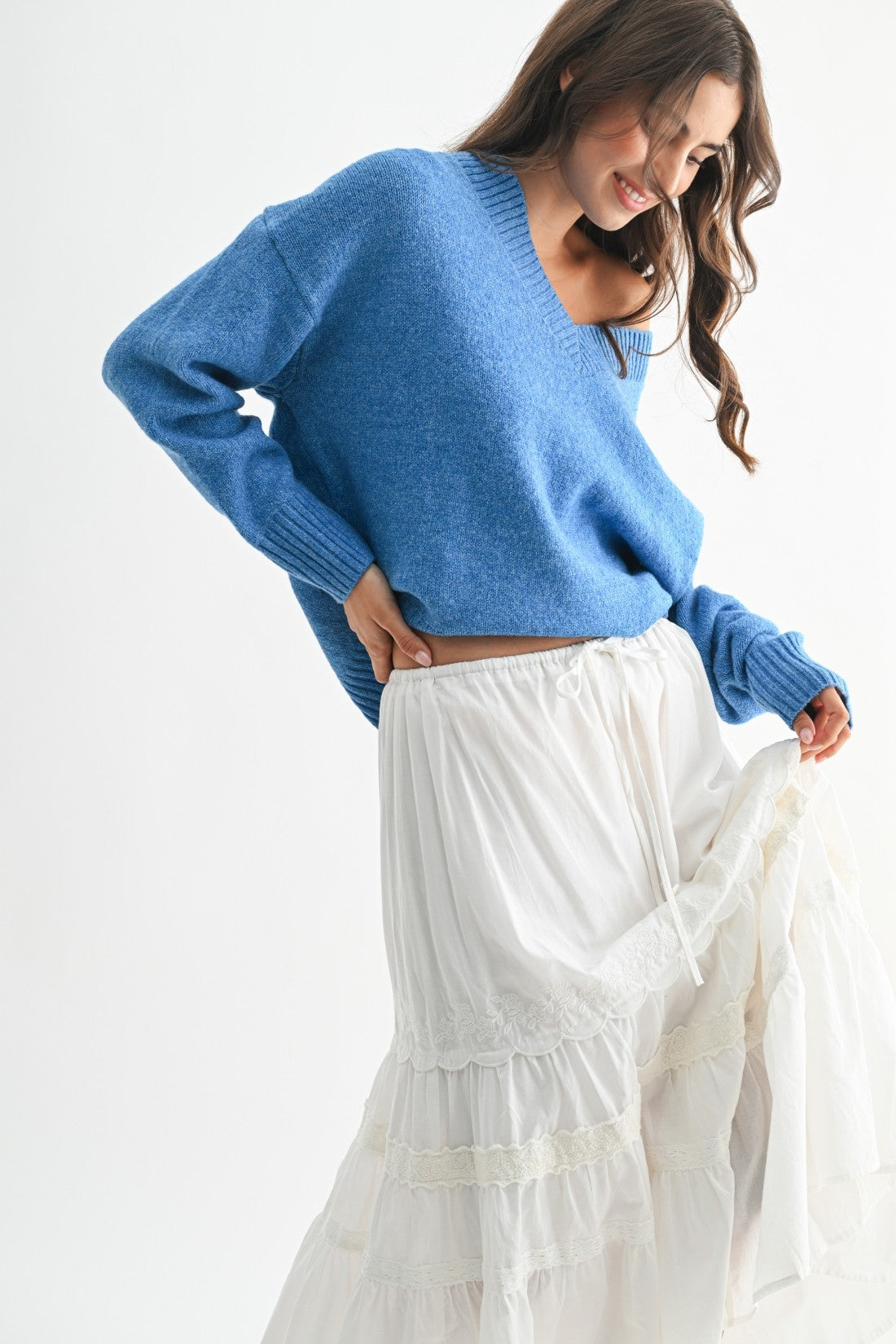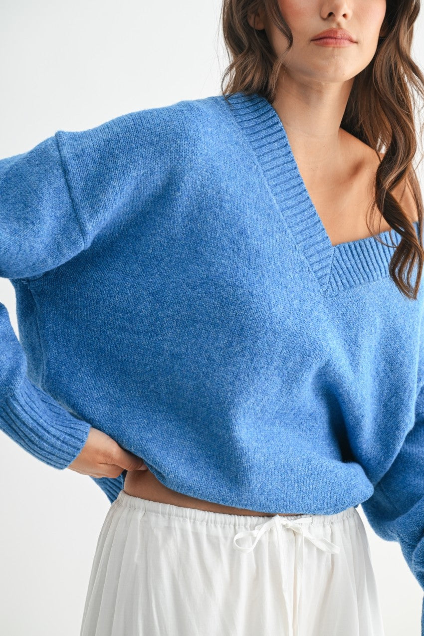 Looking for that go-to sweater you’ll reach for again and again? This soft, relaxed-fit knit in a bright sky blue delivers the perfect mix of comfort and style. Designed with a wide V-neckline, it flatters effortlessly and layers beautifully over camis, dresses, or collared shirts. The ribbed hem and cuffs add structure, while the cozy knit keeps it chic yet easygoing for any occasion.