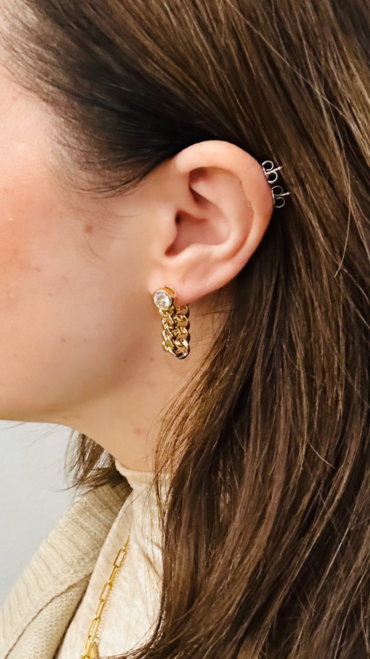 Waterproof Chain Loop Earrings | Non-Tarnish Couture Studs