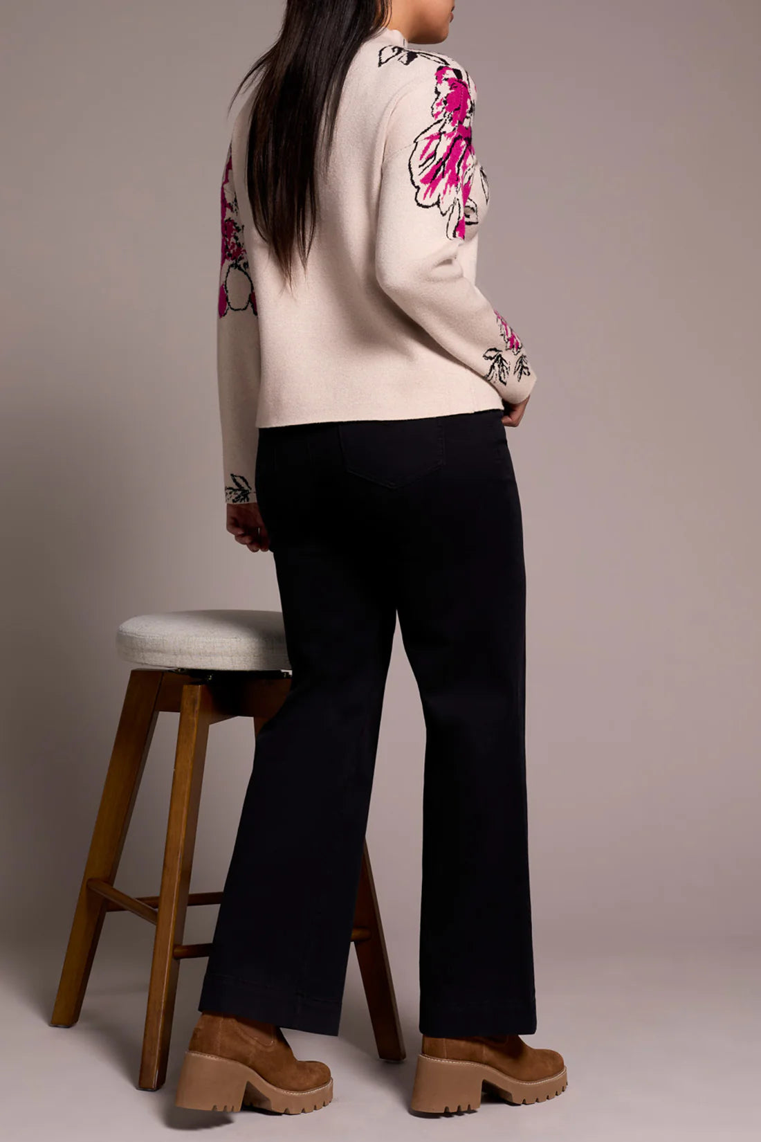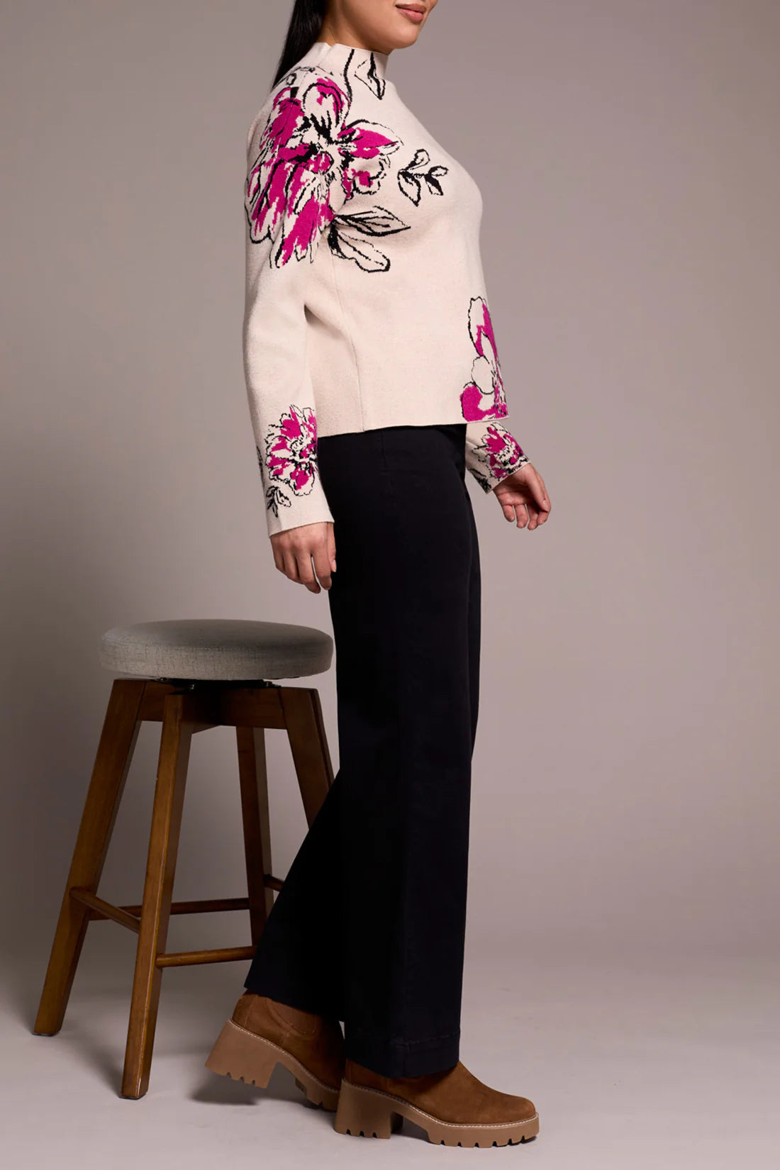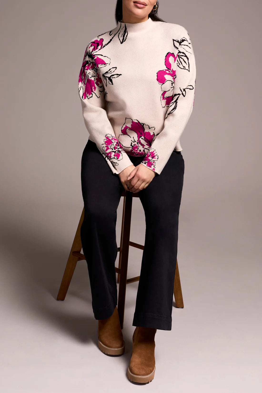 Elevate your everyday wardrobe with this beautifully bold floral sweater. Crafted in a soft neutral base, it’s brought to life with oversized fuchsia and black floral designs that add just the right pop of color. A classic crew neckline and relaxed fit make it as comfortable as it is eye-catching, perfect for pairing with denim or trousers.