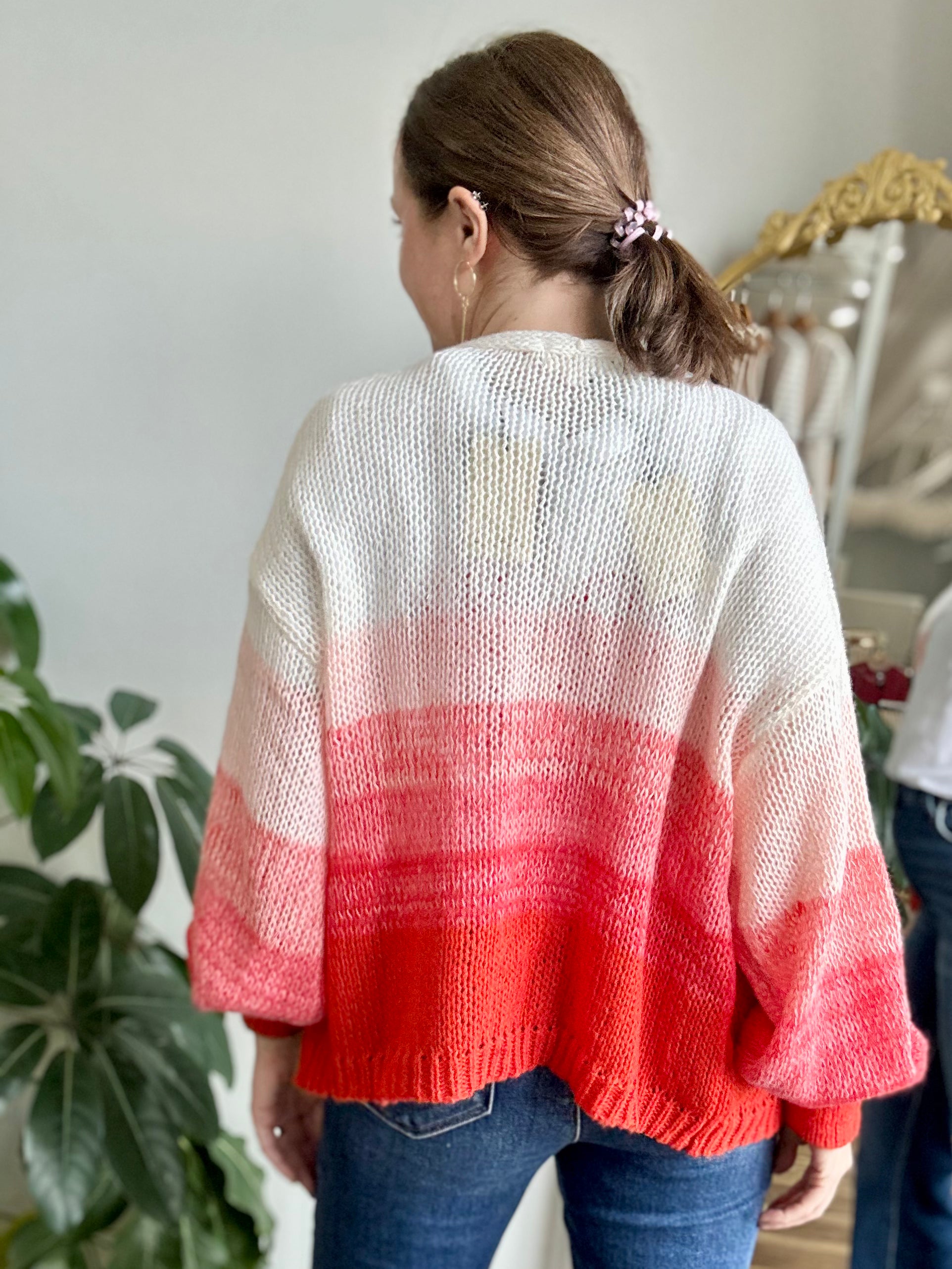 Soft ombré knit design with cream-to-coral color fade