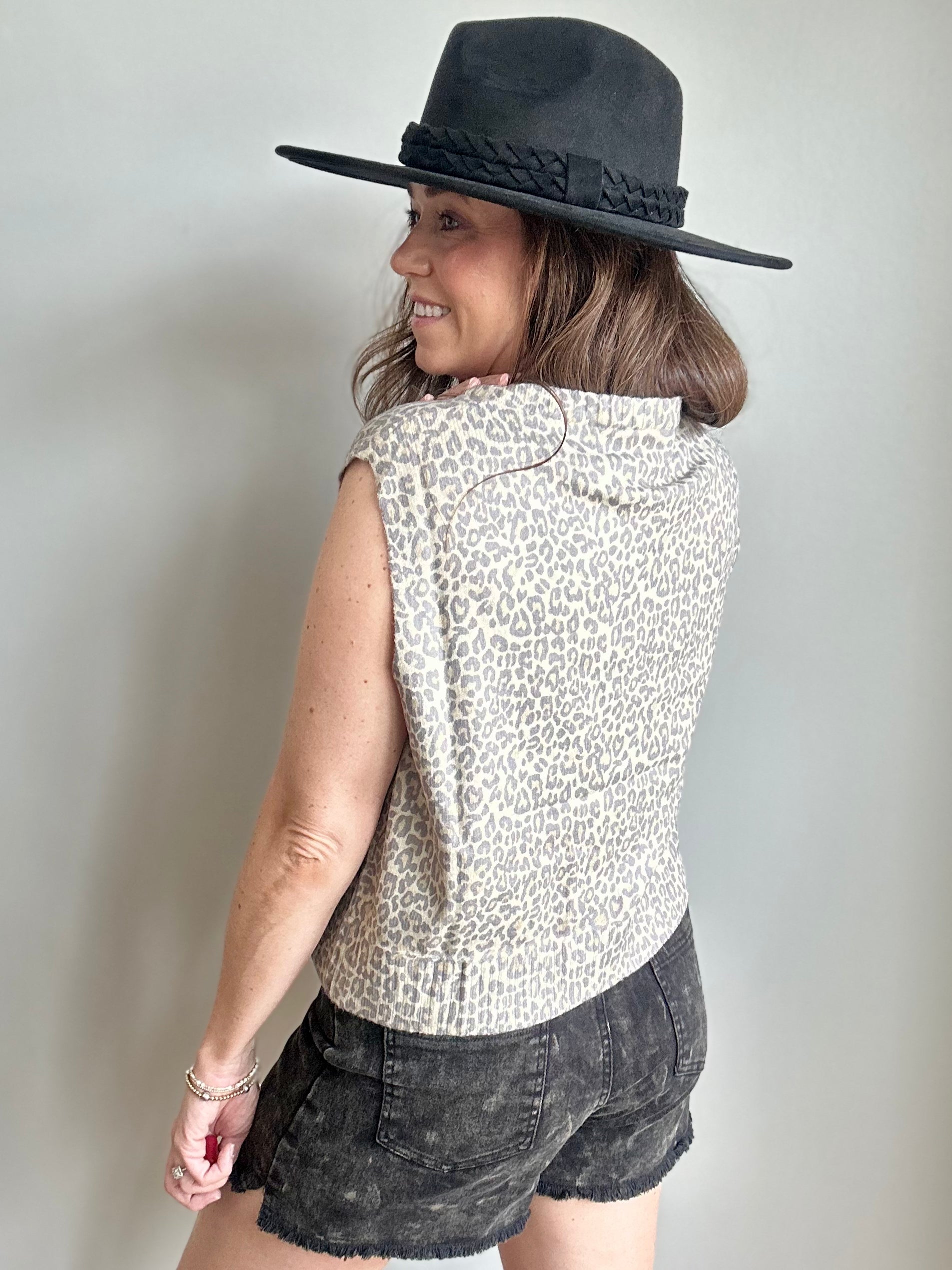 Subtle Leopard Button-Front Sweater Vest