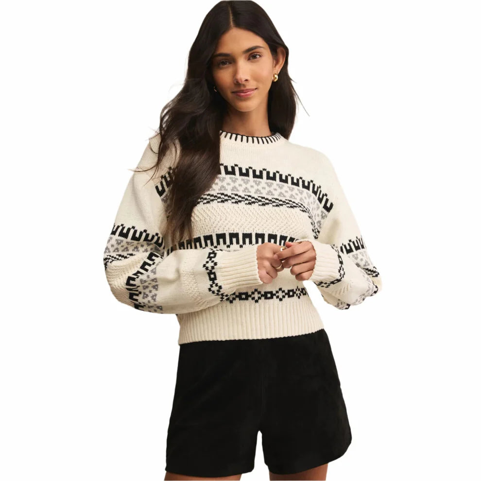 Cozy up in the effortlessly chic Perci Sweater. Designed with a relaxed silhouette and bold geometric stripe pattern, this sweater balances timeless charm with a modern edge. The soft knit and ribbed details at the hem, cuffs, and neckline make it a versatile favorite for layering through the cooler seasons.