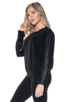 Scuba Knit Crewneck with Pleather Sleeve Detail