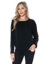 Edgy meets effortless in this elevated everyday top. Crafted from a silky-soft scuba knit, this crewneck brings comfort and style together with a sleek twist — glossy pleather paneling along the sleeves that adds just the right touch of modern edge. It’s the perfect “dressy casual” piece that moves easily from daytime errands to dinner out.