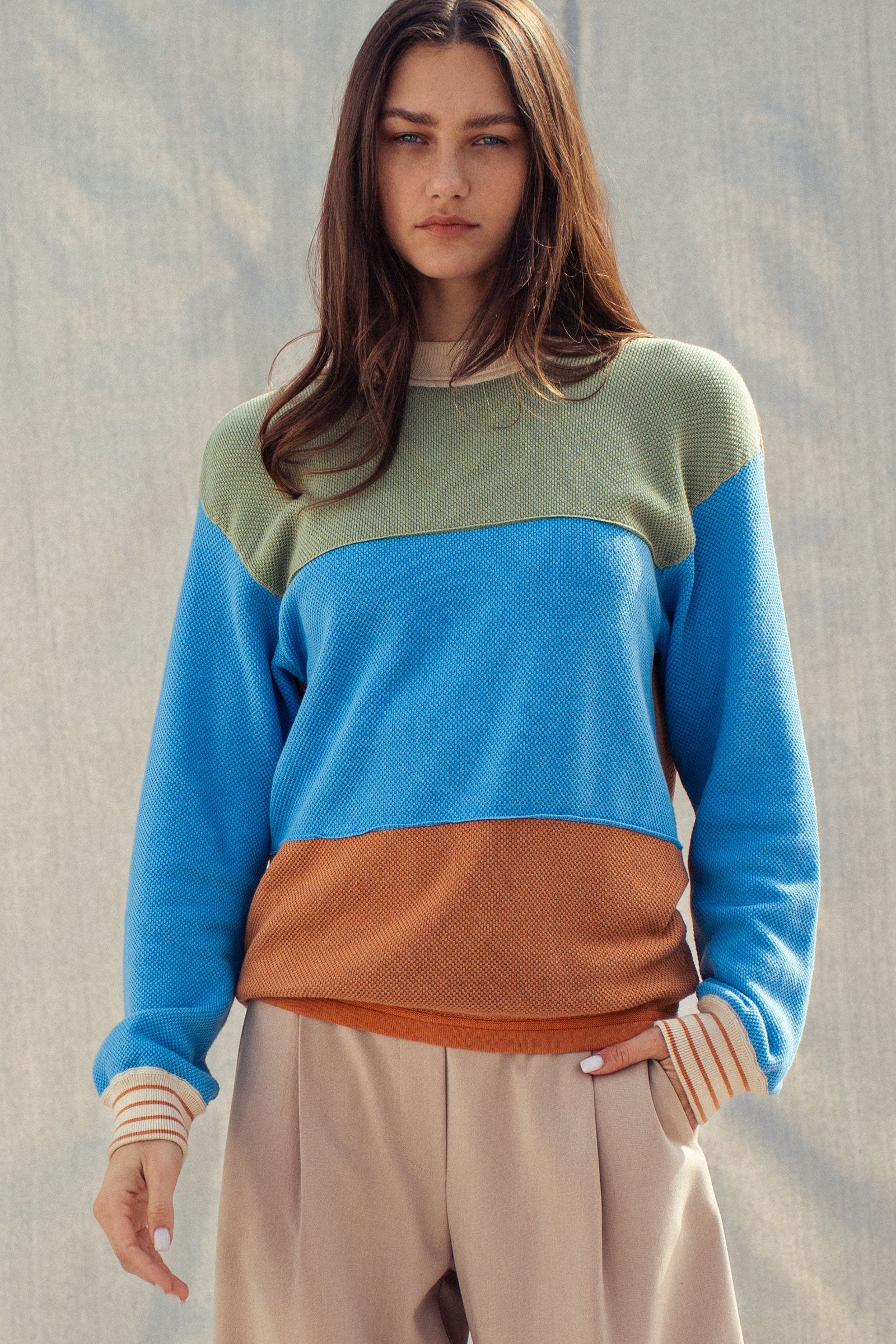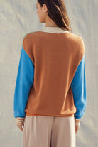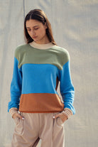 Colorblock Textured Knit Pullover – Relaxed Fit Cotton Sweater