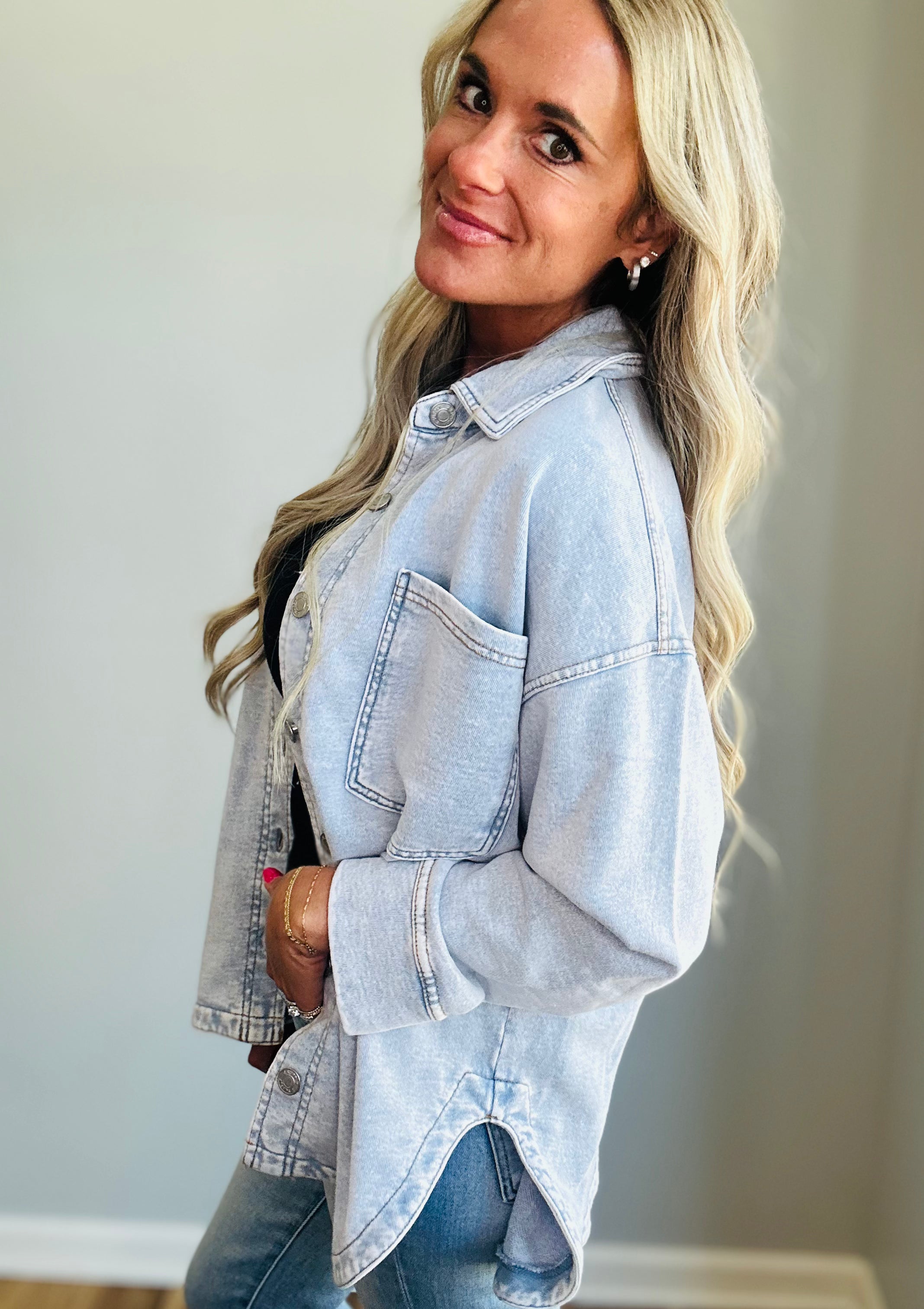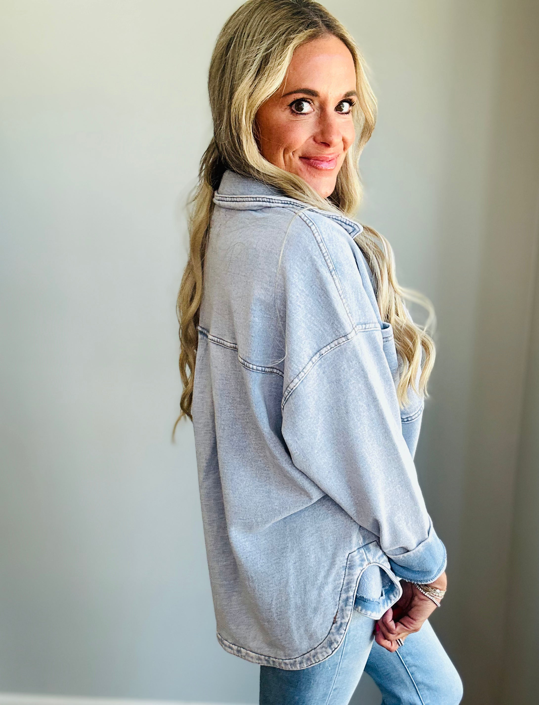 Oversized Light Wash Denim Shirt – Effortless Everyday Style