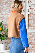 Cozy meets cool-girl outdoorsy. This mixed-media pullover combines a soft sherpa body with quilted puffer sleeves for the perfect blend of warmth and style. The bold contrast chest pocket adds a pop of color (and function), while the half-zip mock neck lets you control your comfort. Whether you're running errands, heading to the cabin, or just leaning into that “off-duty adventure” vibe, this piece brings the personality.