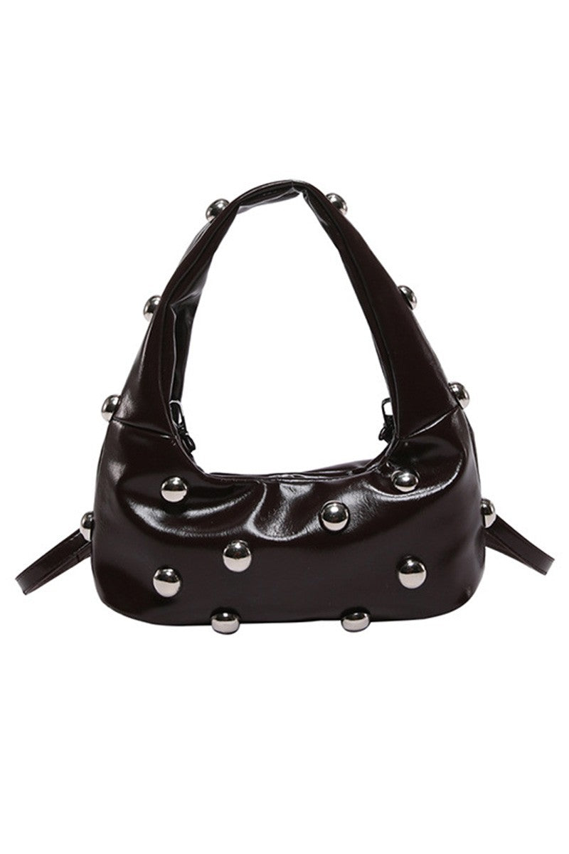 Turn heads with the Statement Studded Shoulder Bag, a bold and stylish accessory designed to elevate your look. Featuring sleek faux leather adorned with eye-catching metallic studs, this bag is perfect for both daytime glam and evening chic. Its compact yet functional design ensures you carry your essentials in style while making a striking fashion statement.